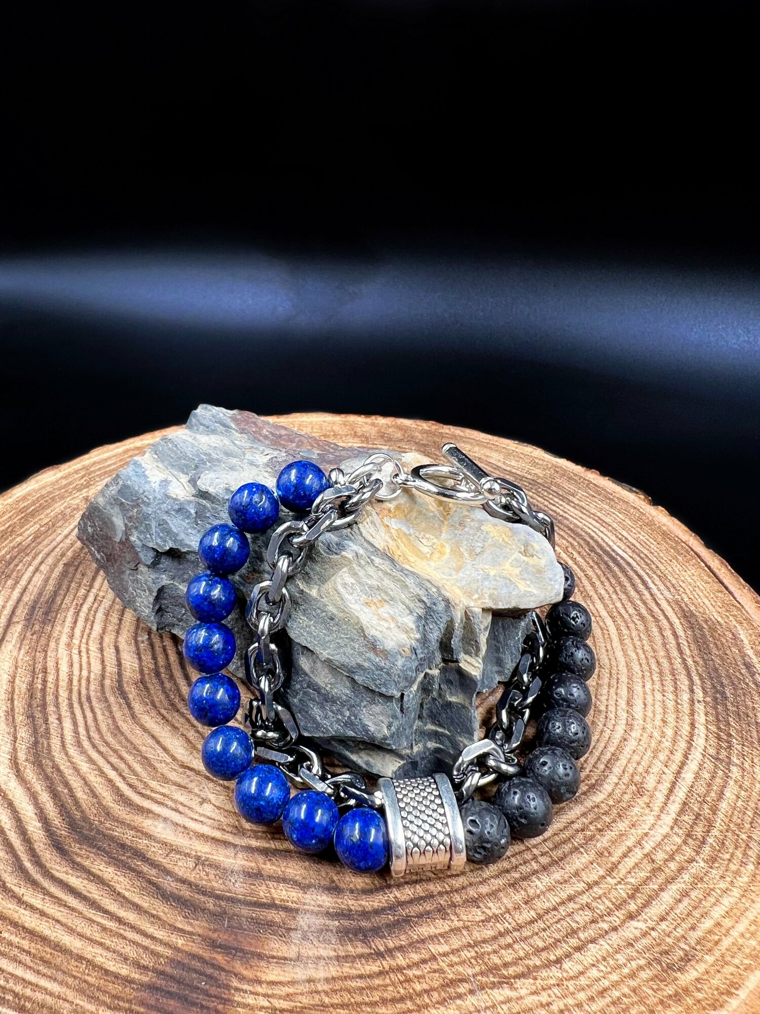 Купить Браслет-талисман с лазуритом и лавовым камнем