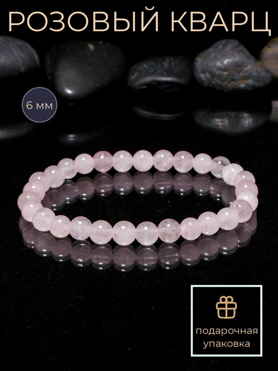Браслет из натурального розового кварца 6 мм. L интересное: