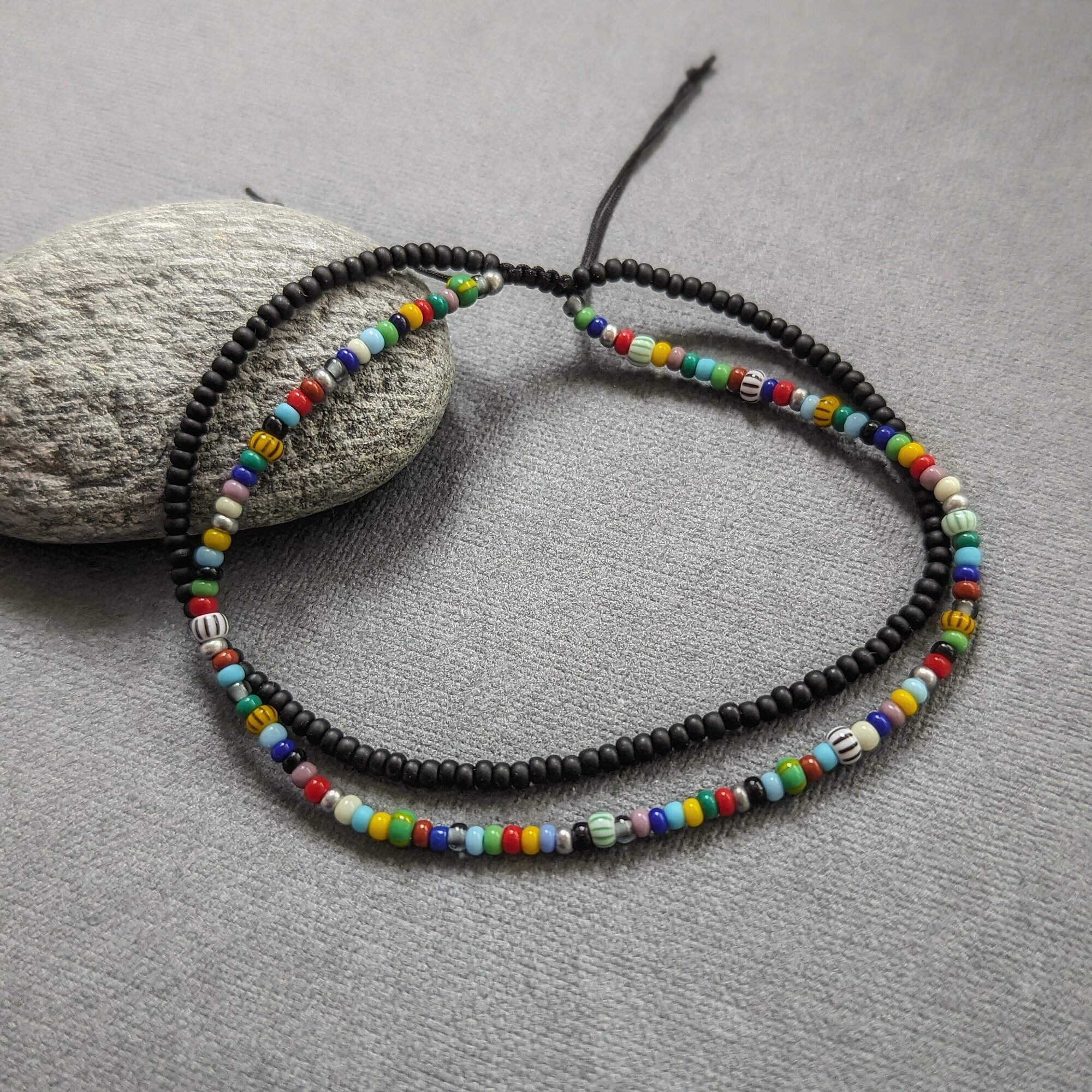 Купить Мужской браслет фенечка на руку из бисера двойной 17 размер