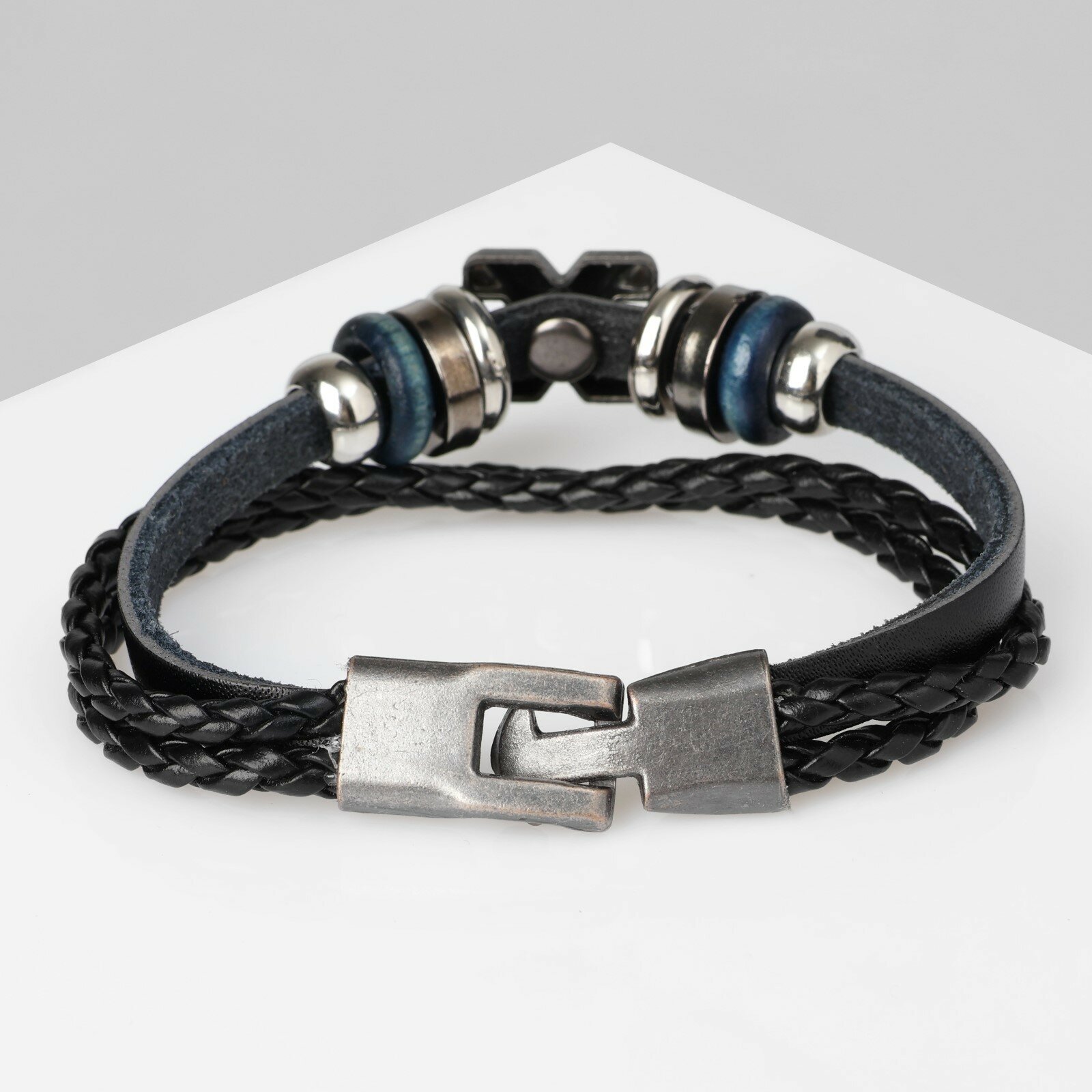 Купить Браслет унисекс «Стиль» икс фактор, цвет чёрный с чернёным серебром, 21,5 см