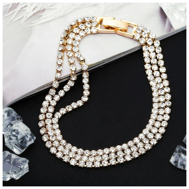 | Комплектация | Браслет со стразами "Лёд" элегантность, 3 ряда, цвет белый в золоте,L 18см |