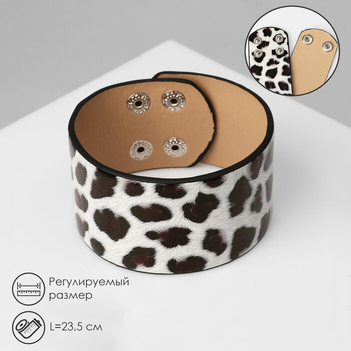 Браслет кожа «Сафари» леопард, широкий, цвет коричнево-белый, 23,5 см интересное: