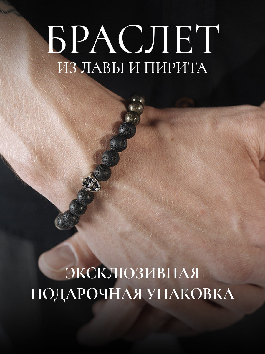 Браслет серии "Защитник" из вулканической лавы и пирита