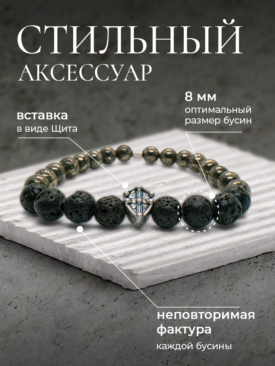 Браслет серии "Защитник" из вулканической лавы и пирита