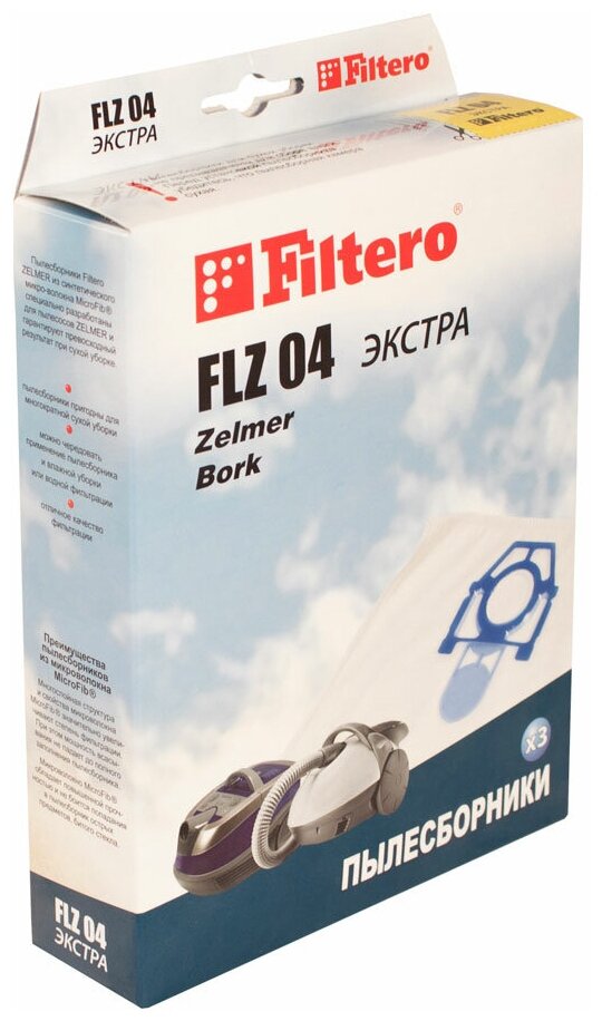FLZ 04 Мешки для пылесосов Zelmer Filtero FLZ 04 (4) экстра, (3 штуки), FLZ 04