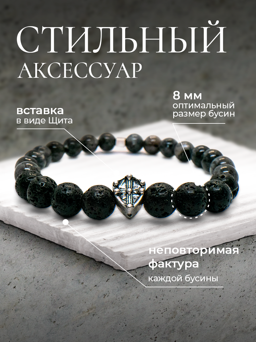 Купить Браслет-оберег "Защитник" из вулканической лавы и ларвикита, 19см