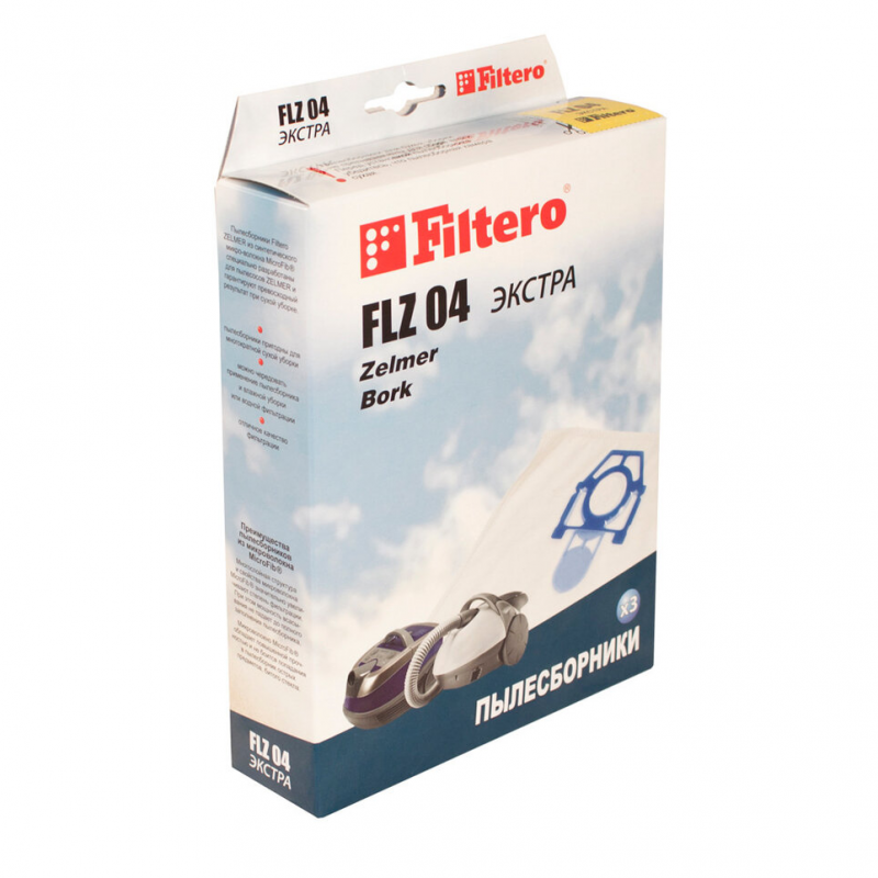 FLZ 04 Мешки для пылесосов Zelmer Filtero FLZ 04 (4) экстра, (3 штуки), FLZ 04