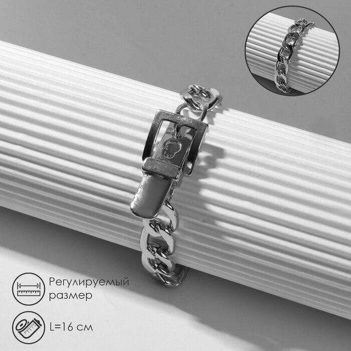 Купить Браслет металл «Цепь» ремень, цвет серебро, L=16 см