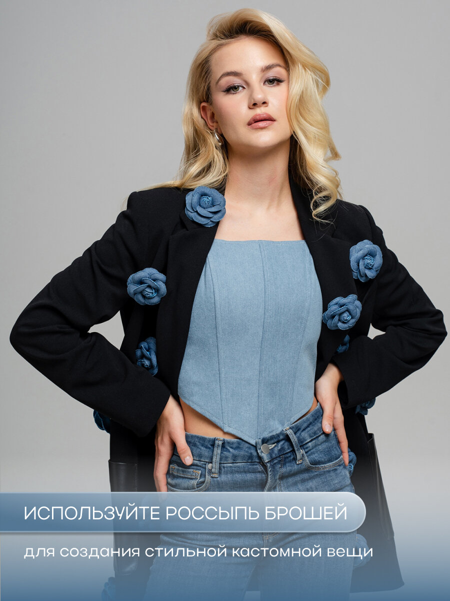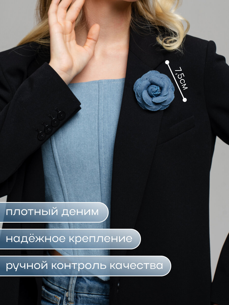 Брошь цветок камелия джинсовая интересное: