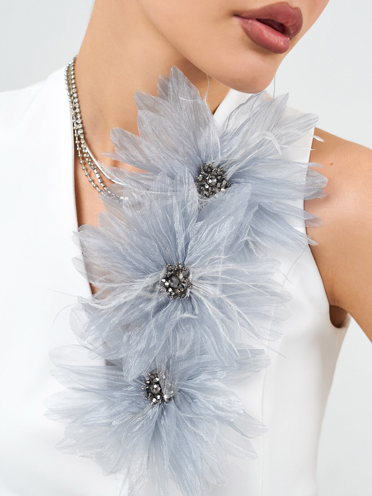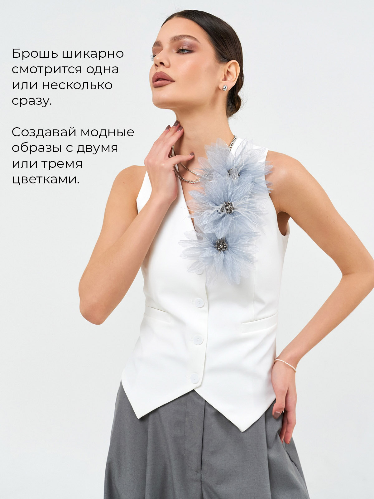 Брошь цветок из ткани с натуральными перьями серая интересное: