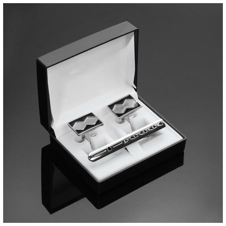 Набор мужской "Запонки + Зажим для галстука" прямоугольник с ромбами, цвет чёрный в серебре 1436835 интересное: