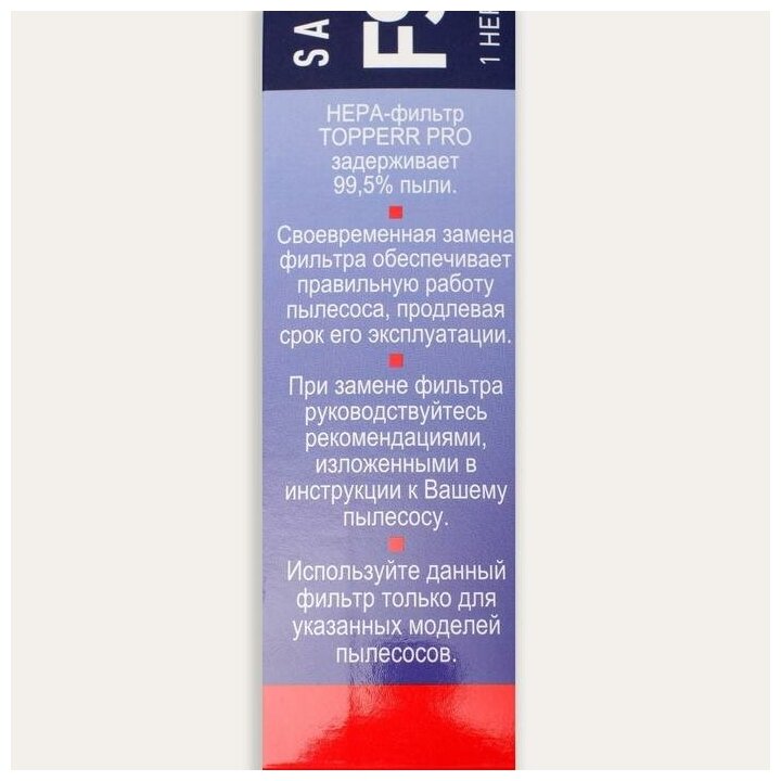 Фильтр Hepa Topperr FSM 881 для пылесосов Samsung .