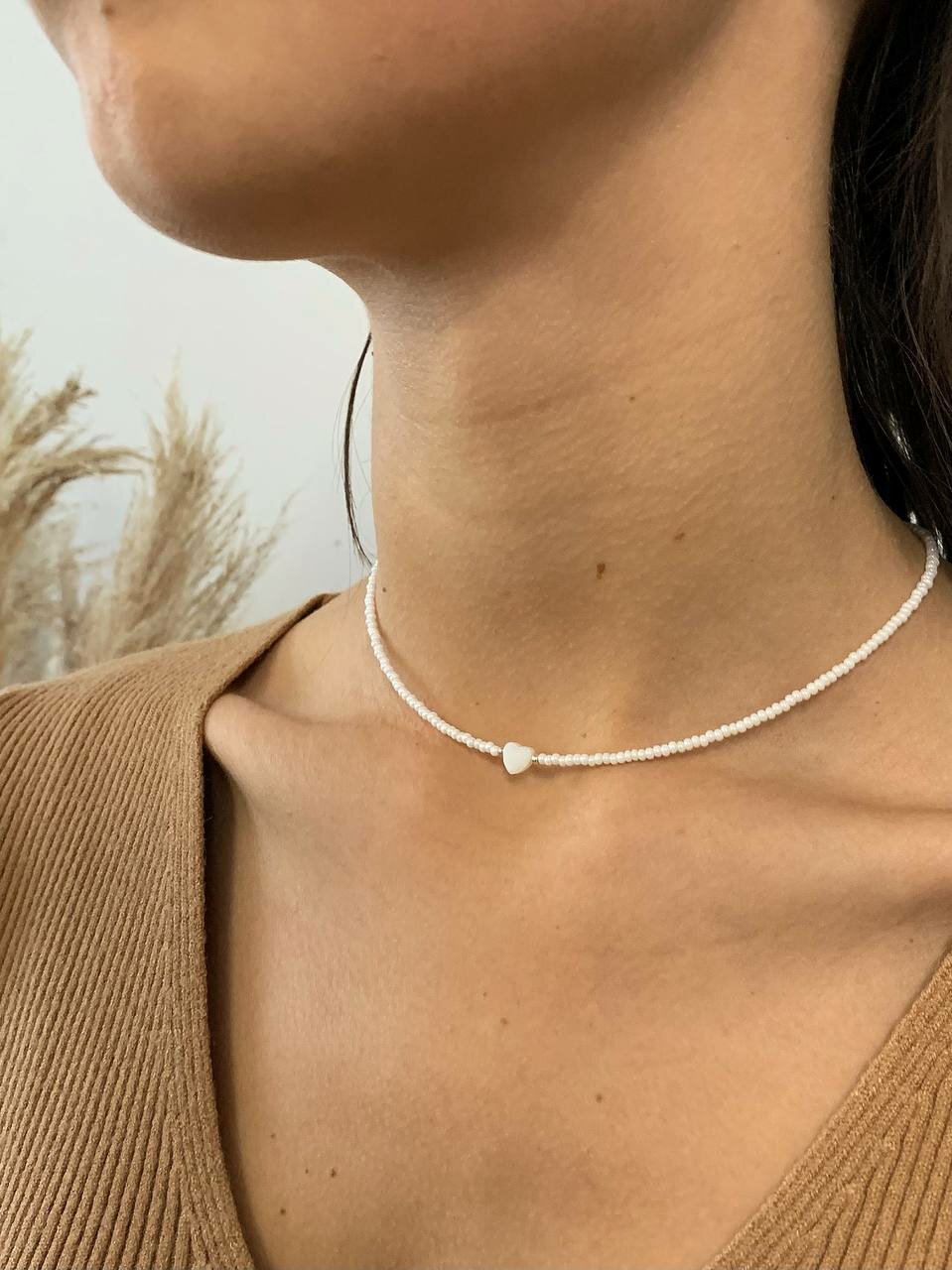 Чокер из жемчужного бисера с сердечком