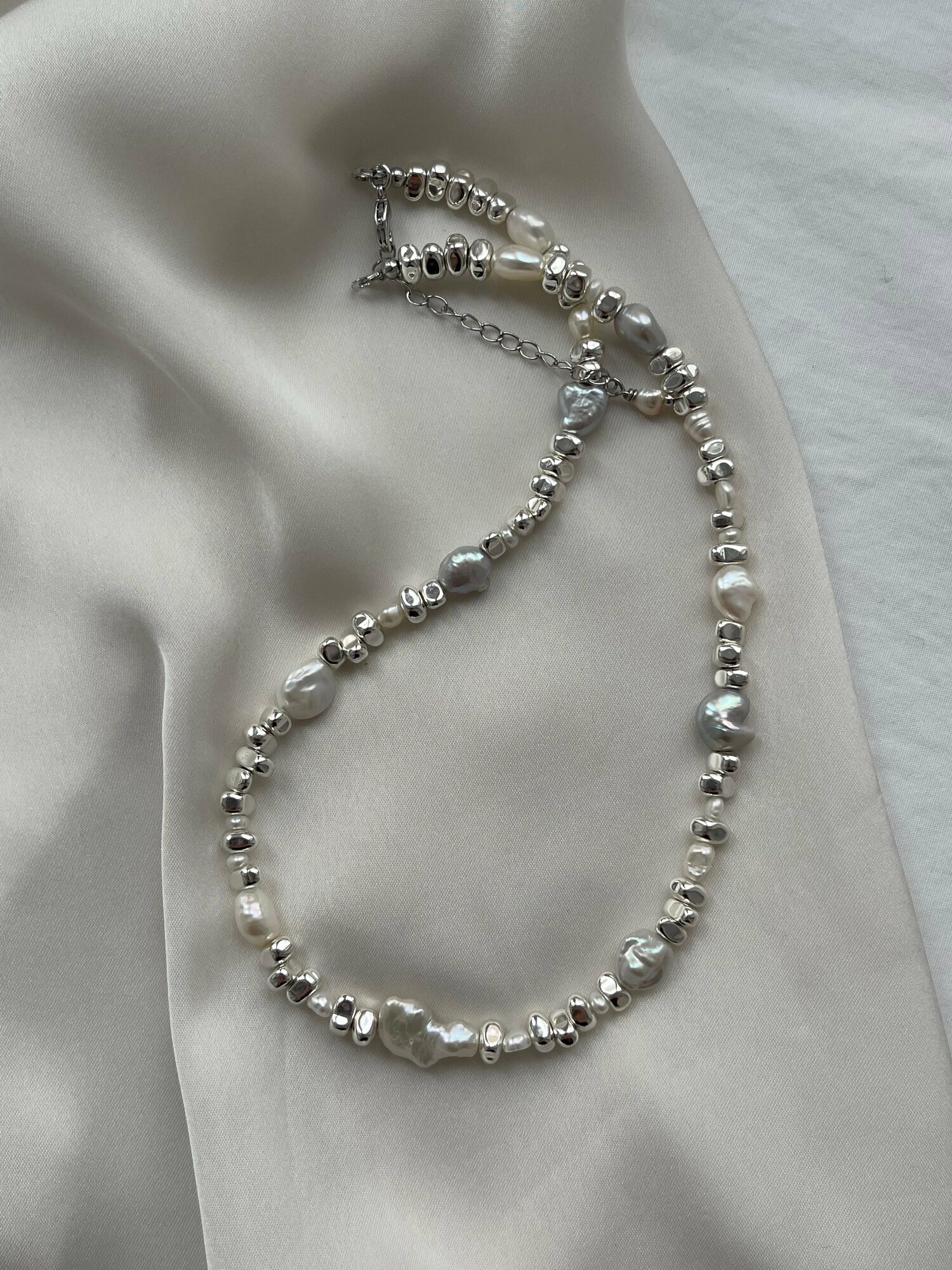 Колье "Pansy" из гематита с барочным жемчугом / родиевое покрытие интересное: