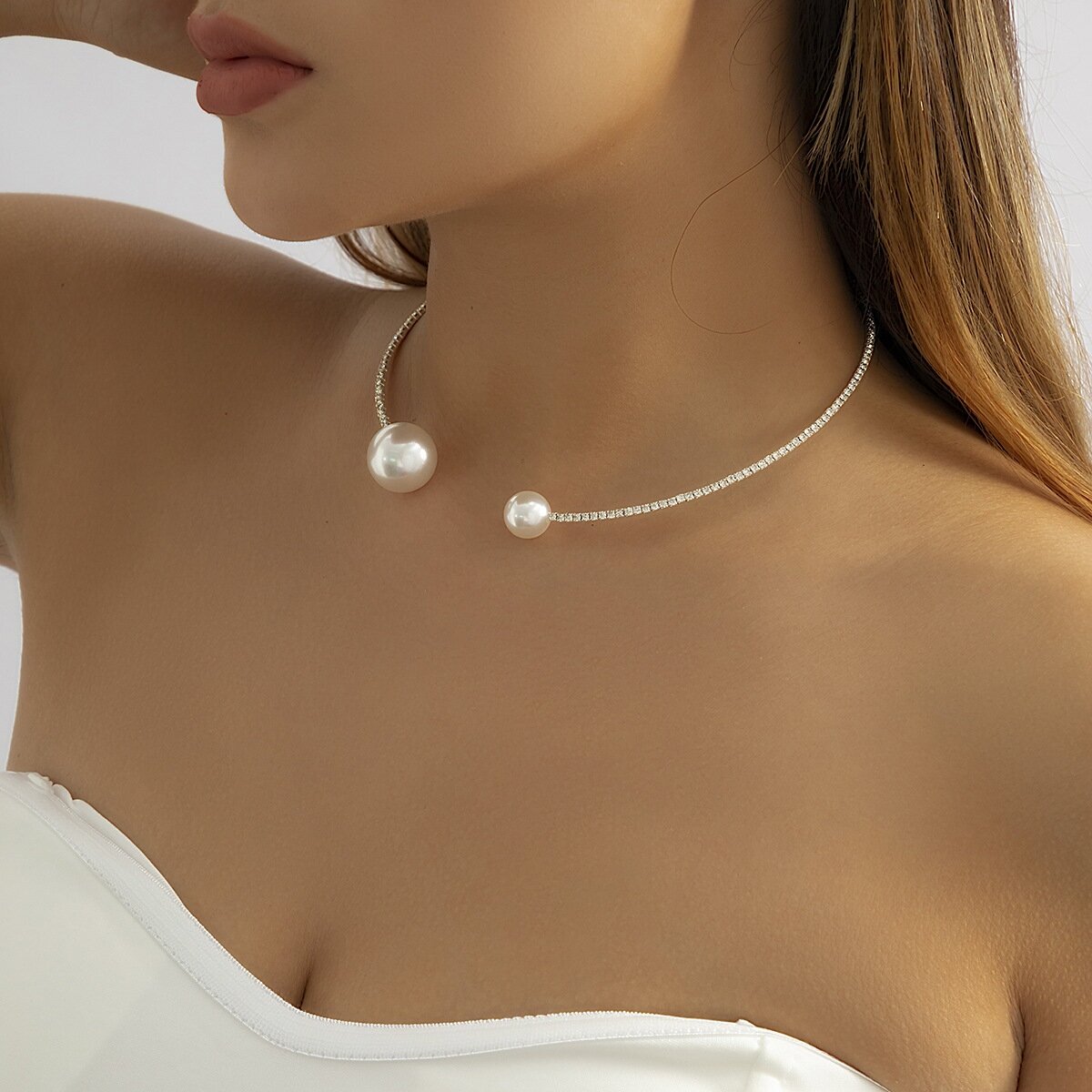 Купить Чокер женский 932 обруч с кристаллами и искусственным жемчугом, серебристый