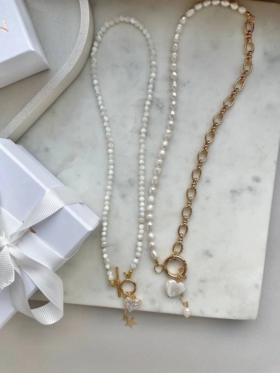 Колье из натурального жемчуга с цепью и сердцем из керамики Azure, Подарочный набор для женщин, девушек, Ожерелье