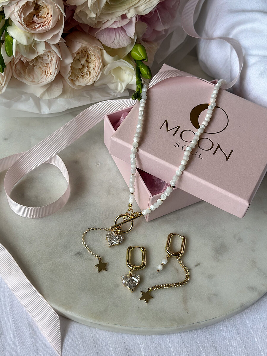 Чокер из натурального камня, Регулируемый 39 см (+4), Колье Avrora на шею из жемчуга, Украшение с подвеской в форме сердца из ювелирного стекла на цепочке, Подарок для женщин, девушек, MOON SOUL