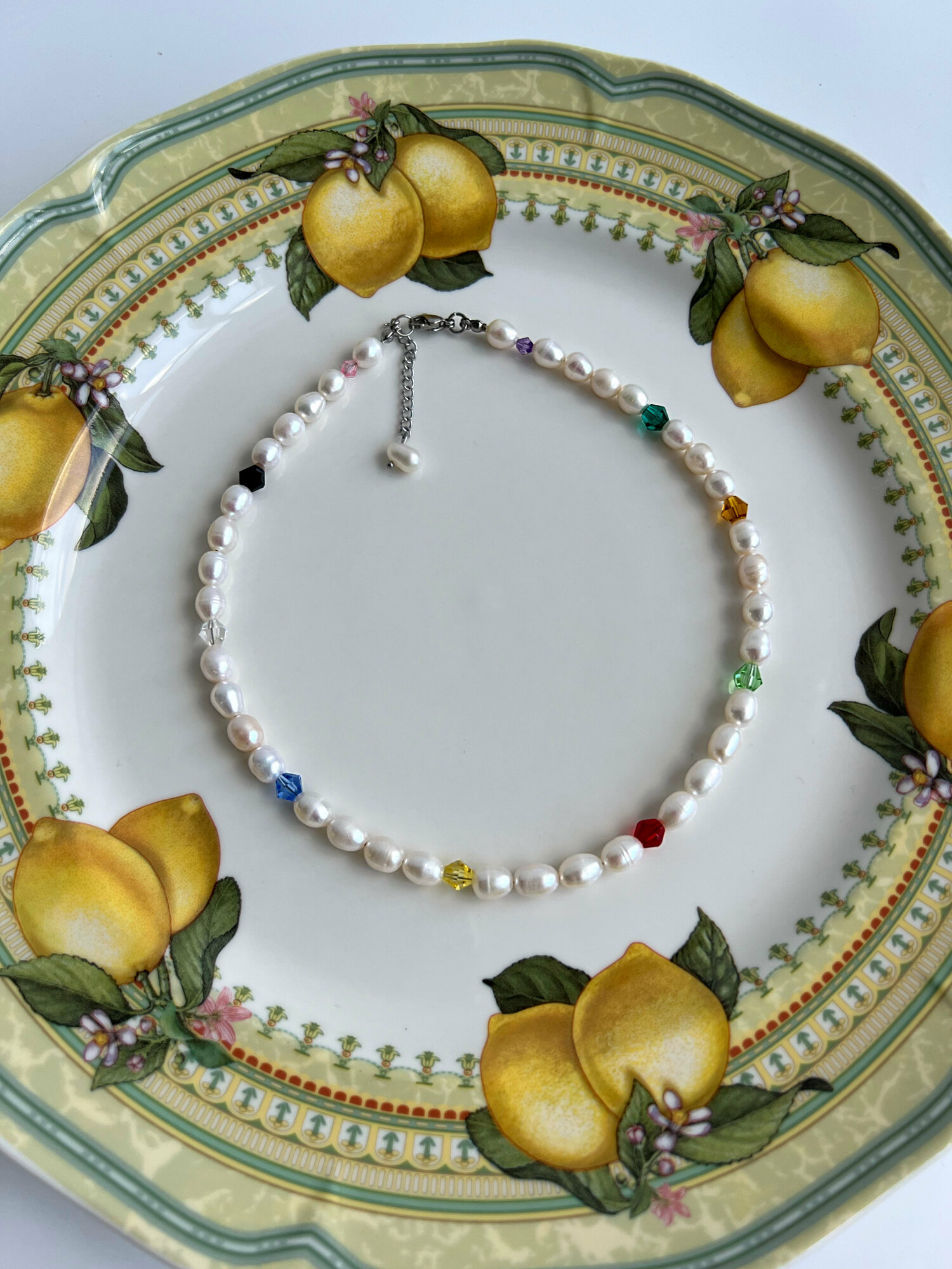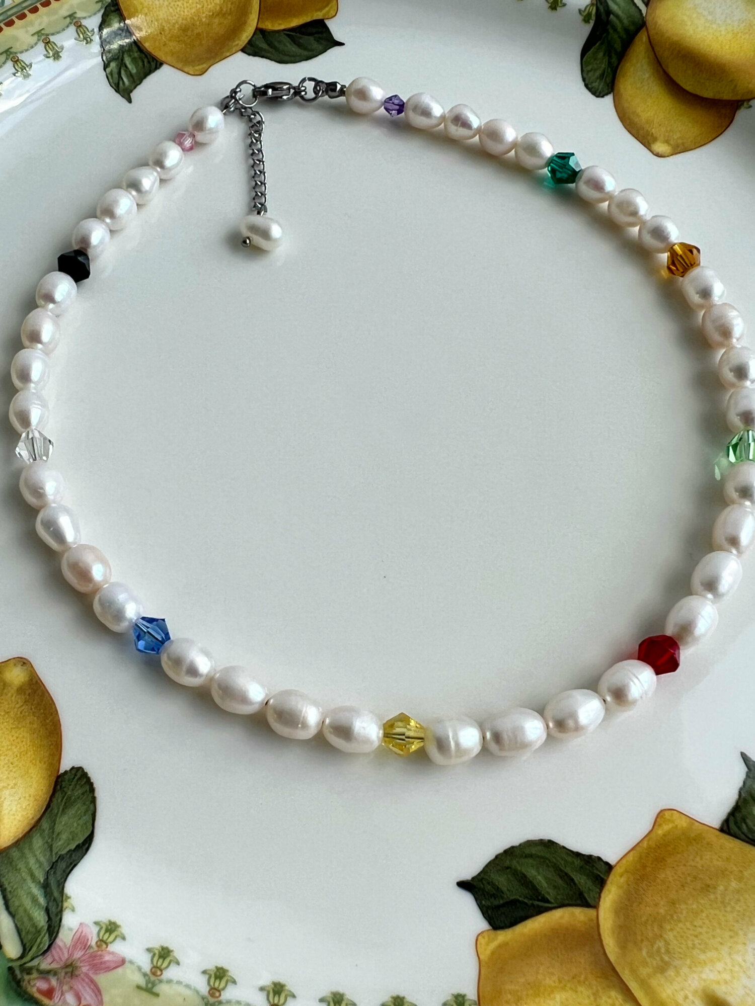 Колье жемчужное с хрустальными вставками/ чокер колье из культивированного жемчуга интересное: