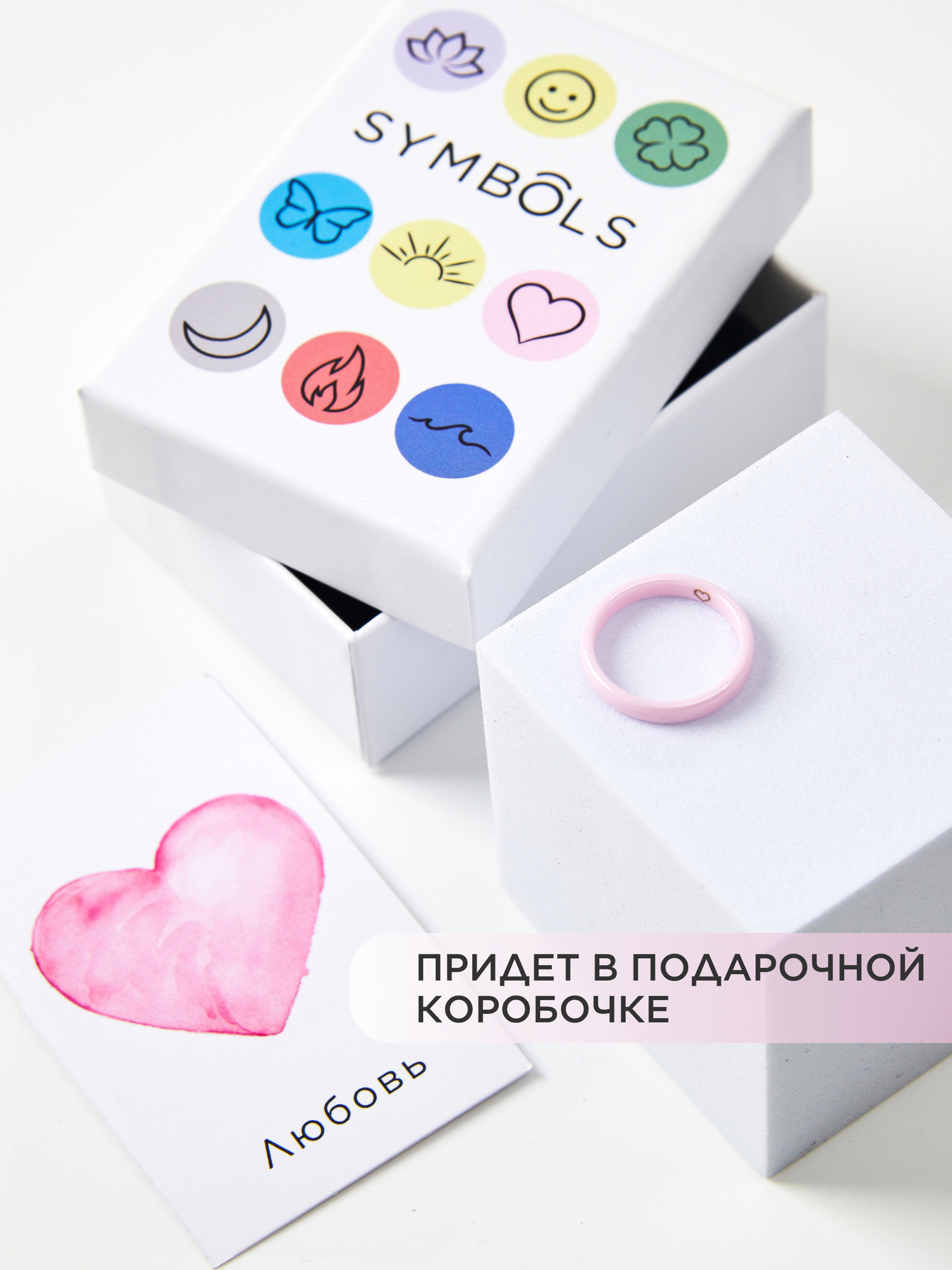 СохранитьКерамическое кольцо с гравировкой розовое "Сердце" 15,5 размер интересное:
