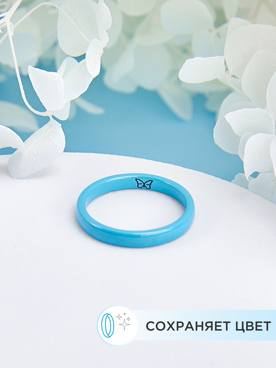 Кольцо Noima, керамика, размер 17.5, ширина 3 мм, голубой