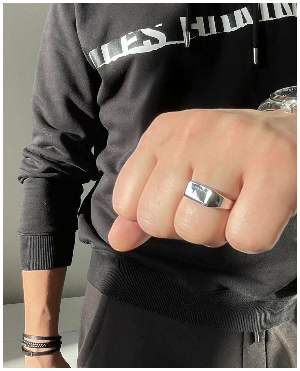 Широкое квадратное мужское кольцо из стали, ширина 9 мм.