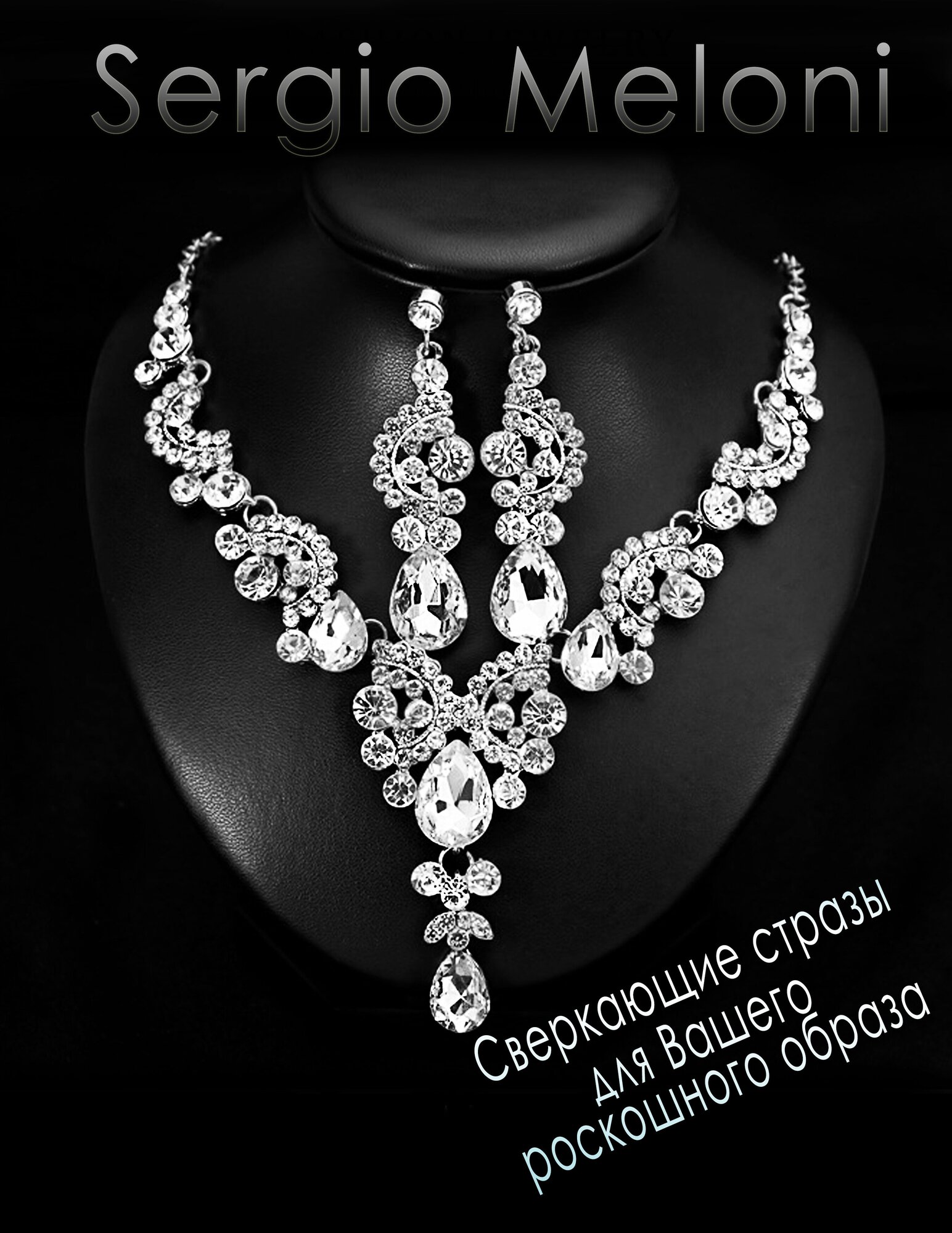 Комплект бижутерии с крупными стразами свадебный Sergio Meloni колье и серьги интересное: