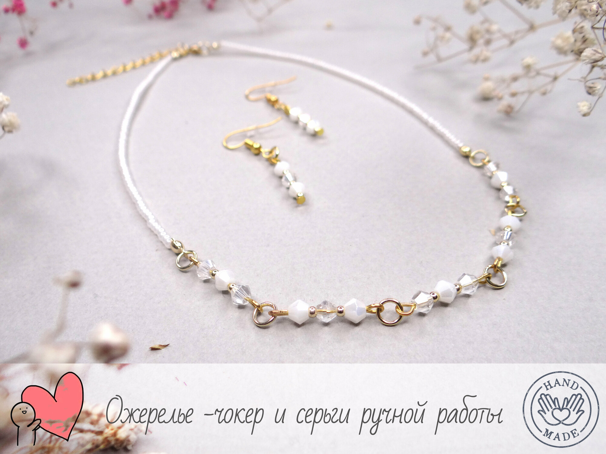 Серьги и чокер "K&A" ручной работы, длина 41-46,5 сантиметров интересное: