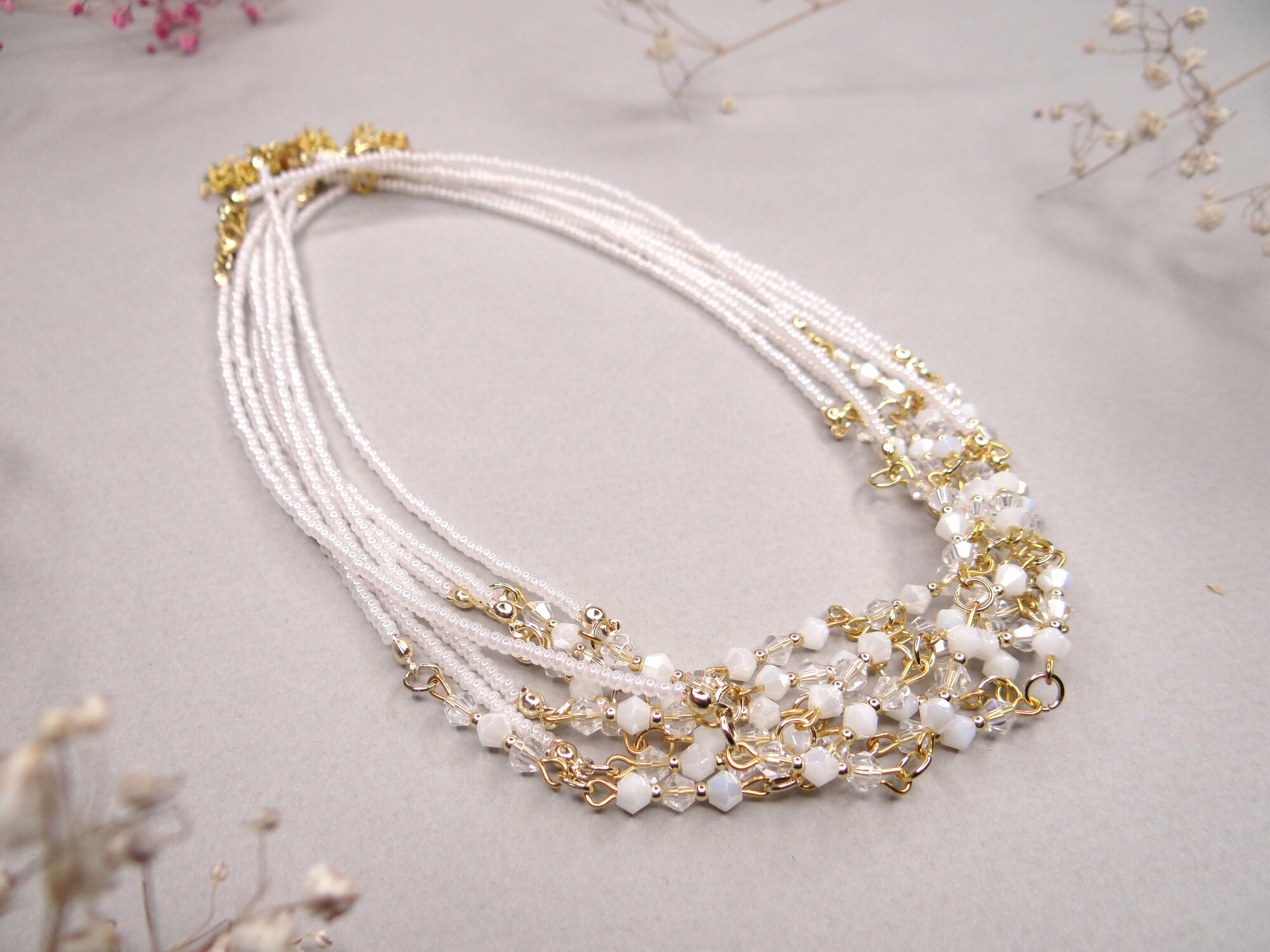 Набор 2 предмета: серьги, колье "Антуанетта" гранж, цвет белый в серебре, 40см
