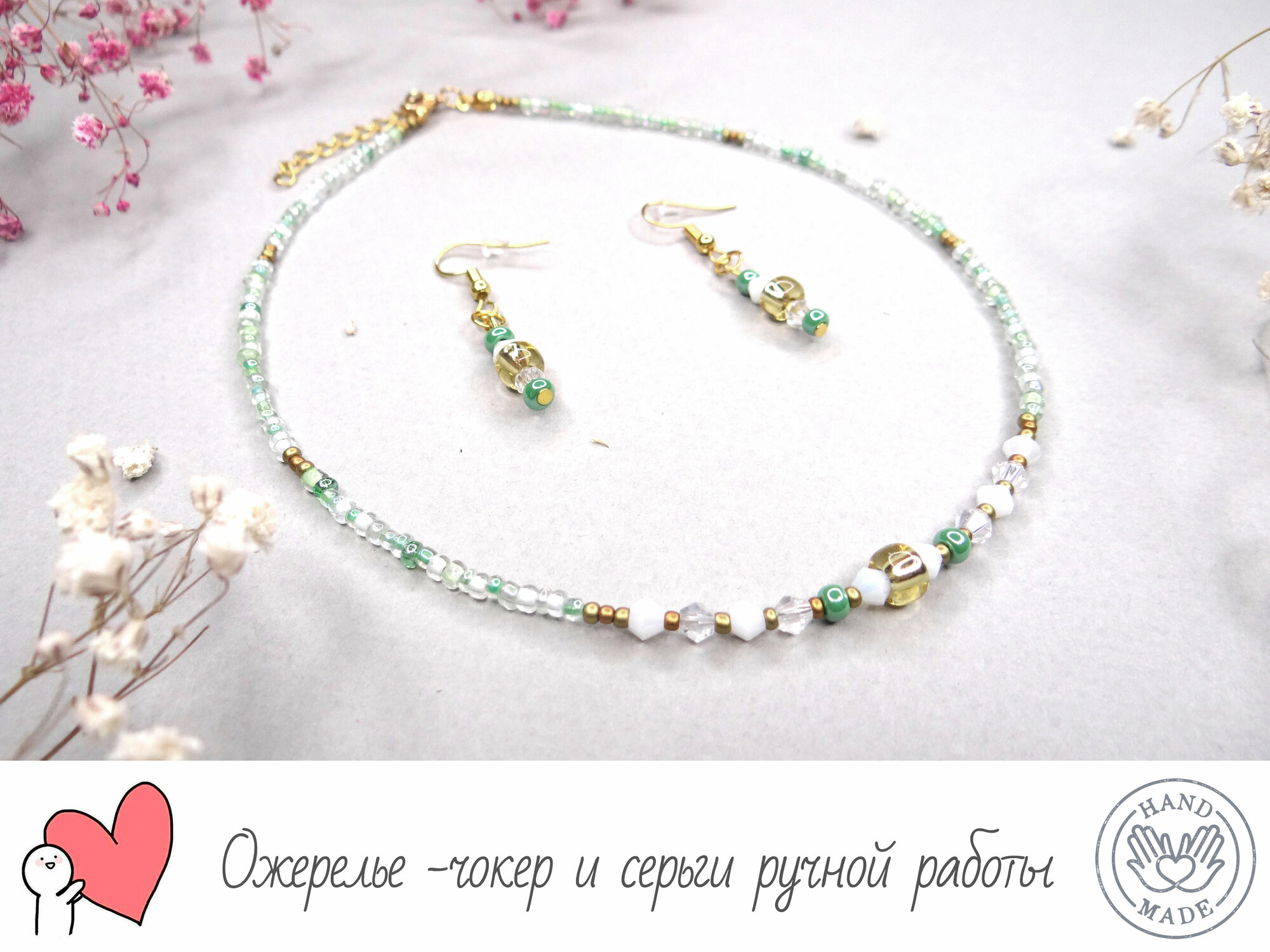 Серьги и чокер "K&A" ручной работы, длина 38 сантиметров интересное: