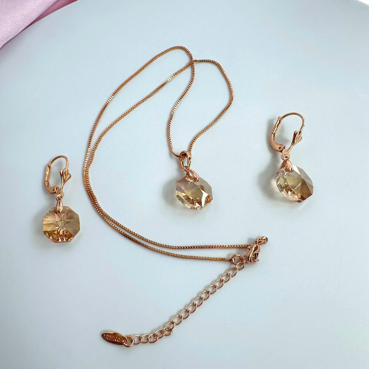 | Дополнительная информация | Размер кристаллов: 12 x 12 мм. Длина колье: Регулируемая, 40-46 см. Размер подвески: 22 x 12 мм. Размер серьги: 32 x 12 мм. |