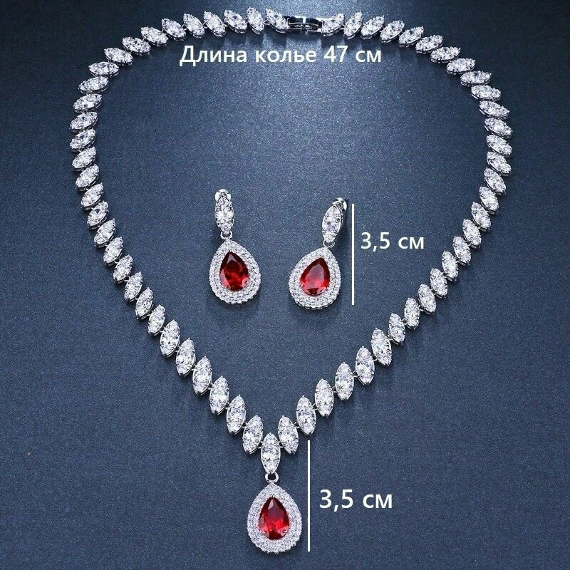 | Комплектация | В комплект поставки входит: серьги (2 шт) 1 колье, 1 бархатный футляр |