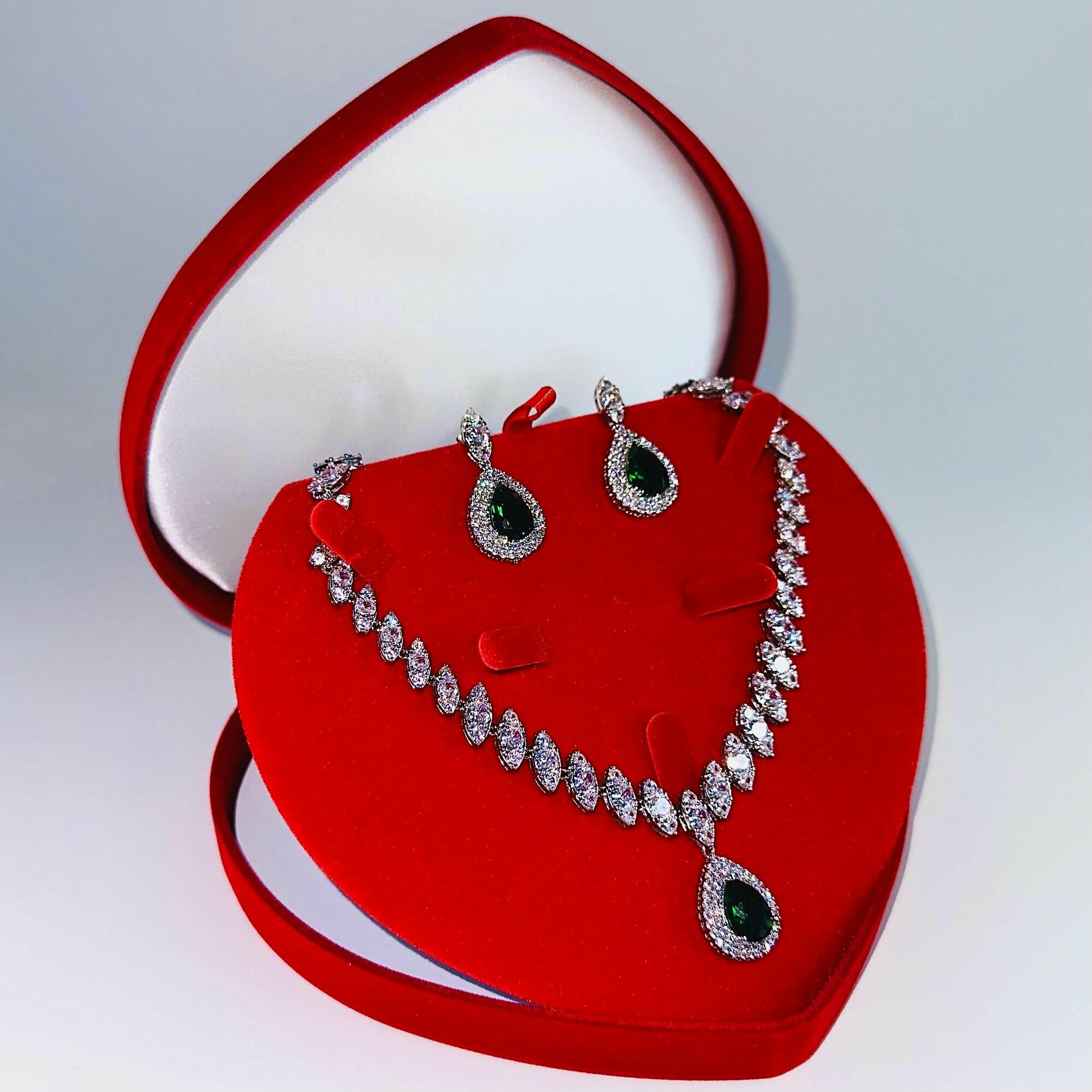 | Комплектация | В комплект поставки входит: серьги (2 шт) 1 колье, 1 бархатный футляр |