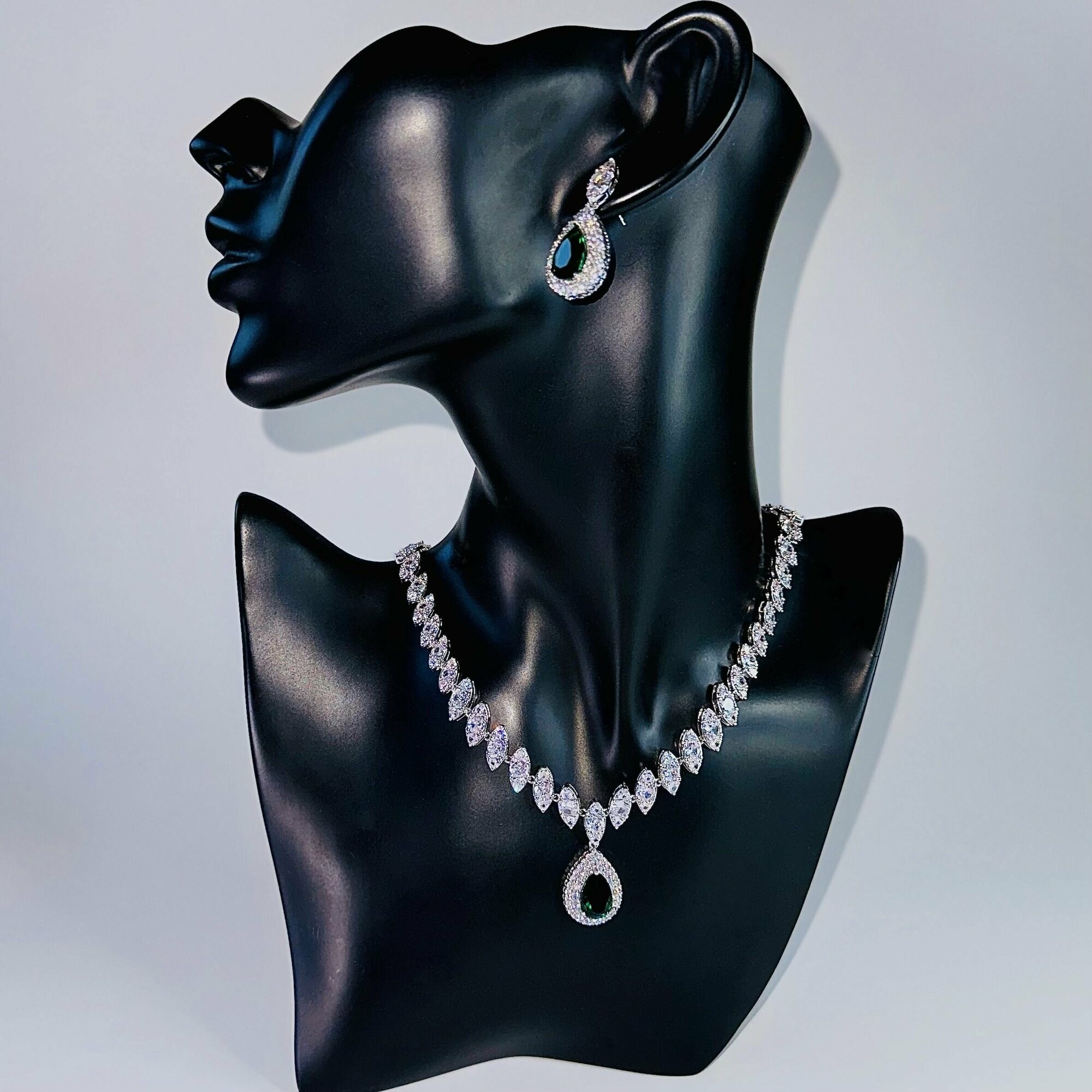 Комплект "Каталина" с зелёными кристаллами. Украшения на свадьбу, выпускной, юбилей. интересное: