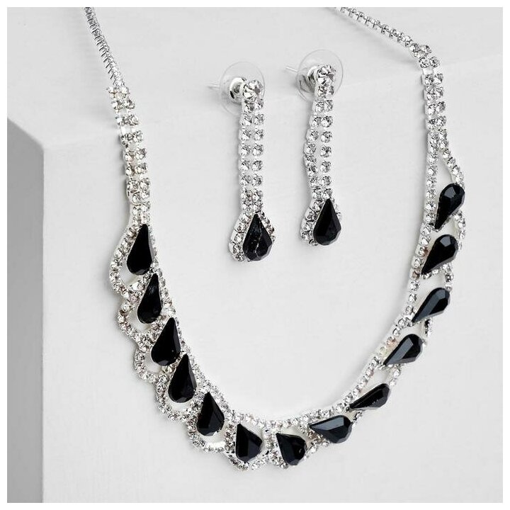 Купить Набор 2 предмета: серьги, колье «Листопад» капли, цвет чёрно-белый в серебре, 45 см