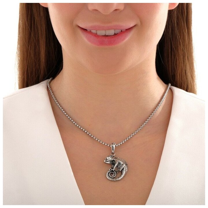 Кулон-амулет «Помпеи» хамелеон, цвет чернёное серебро, 70 см интересное: