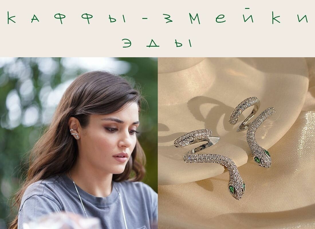 Серьги - каффы "Змеи" Эды Йылдыз из сериала "Постучись в мою дверь", каффы с проколом, серебристые, со стразами интересное: