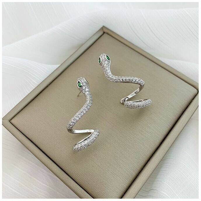 Купить Серьги - каффы "Змеи" Эды Йылдыз из сериала "Постучись в мою дверь", каффы с проколом, серебристые, со стразами