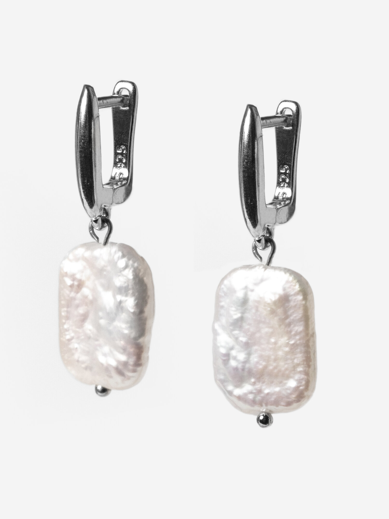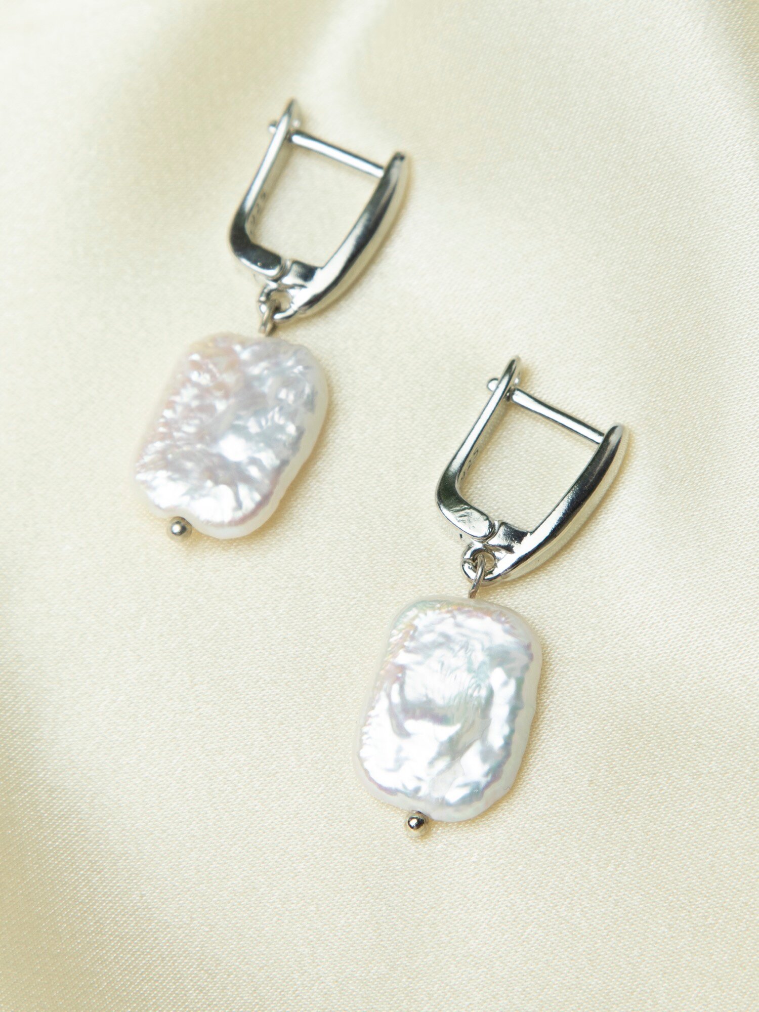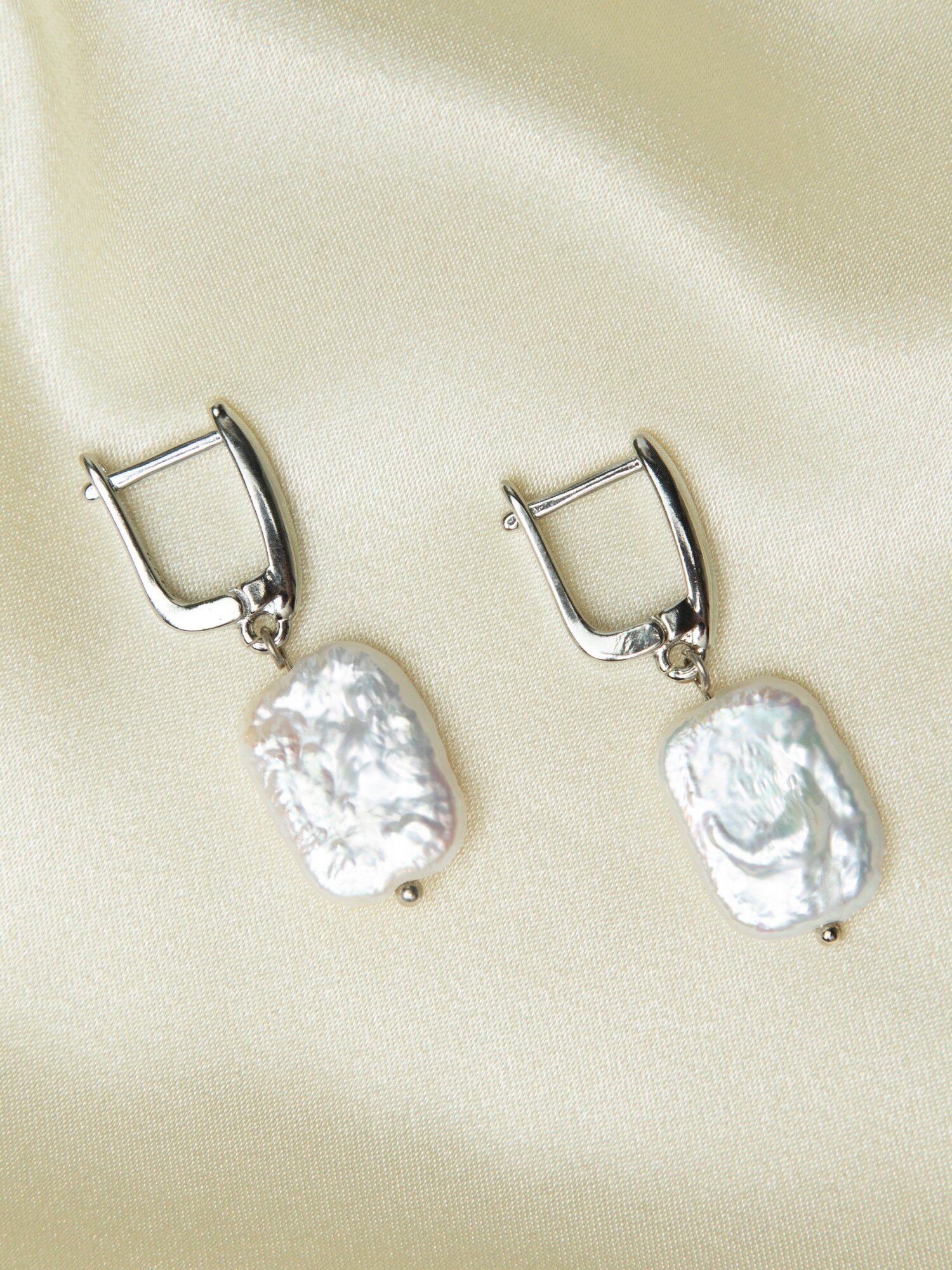 Купить Серьги женские с барочным жемчугом Artisan белого цвета с фурнитурой с родиевым покрытием на английском замке