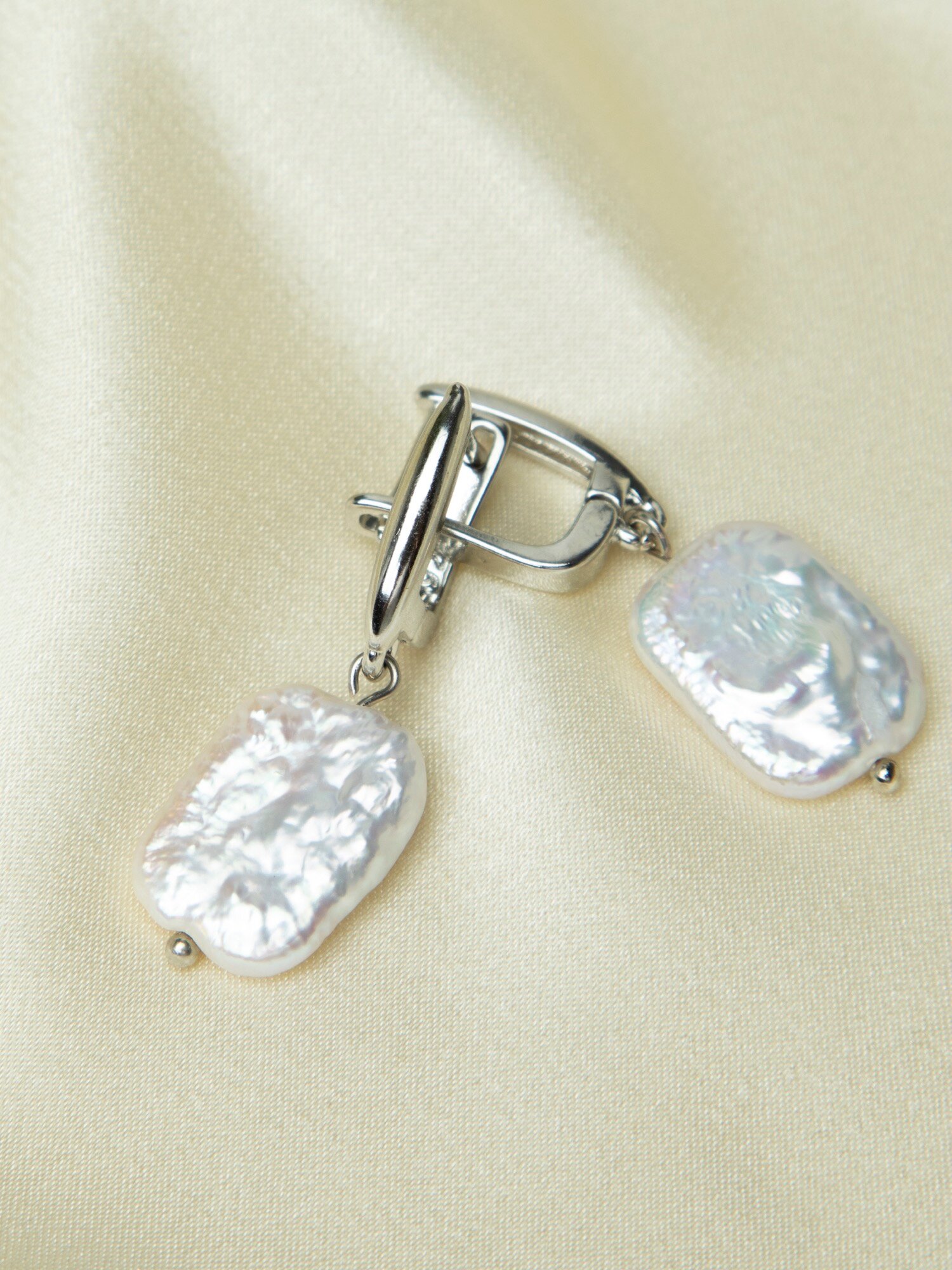 Серьги женские с барочным жемчугом Artisan белого цвета с фурнитурой с родиевым покрытием на английском замке интересное:
