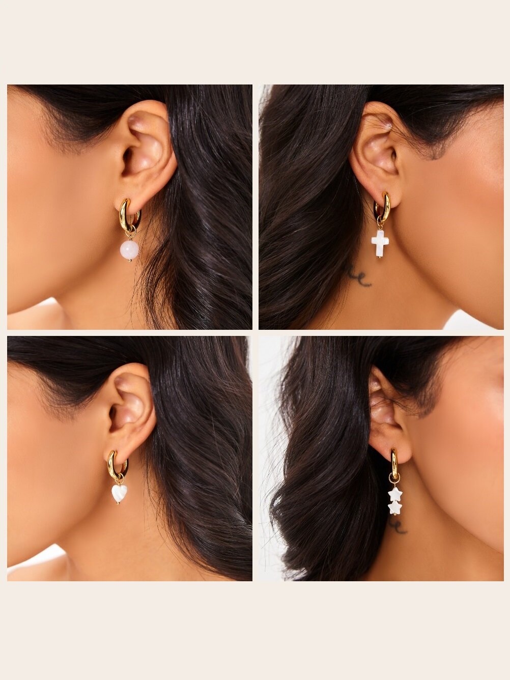 Купить Набор подвесок на серьги конго 4 штуки из перламутра и роз.кварца NOIMA