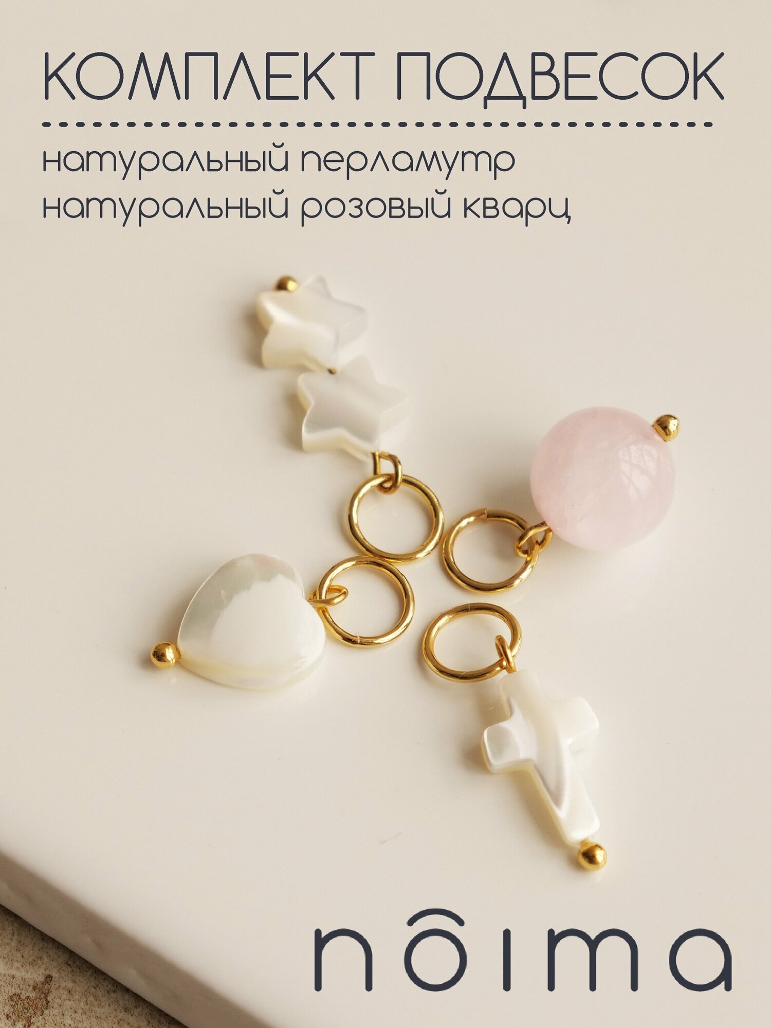 Набор подвесок на серьги конго 4 штуки из перламутра и роз.кварца NOIMA интересное: