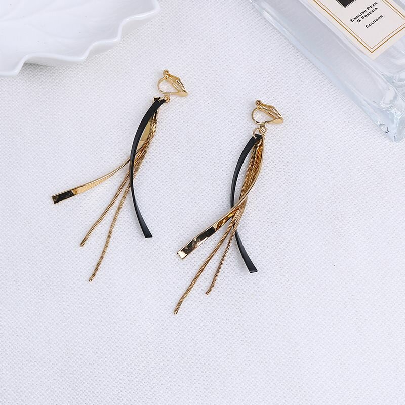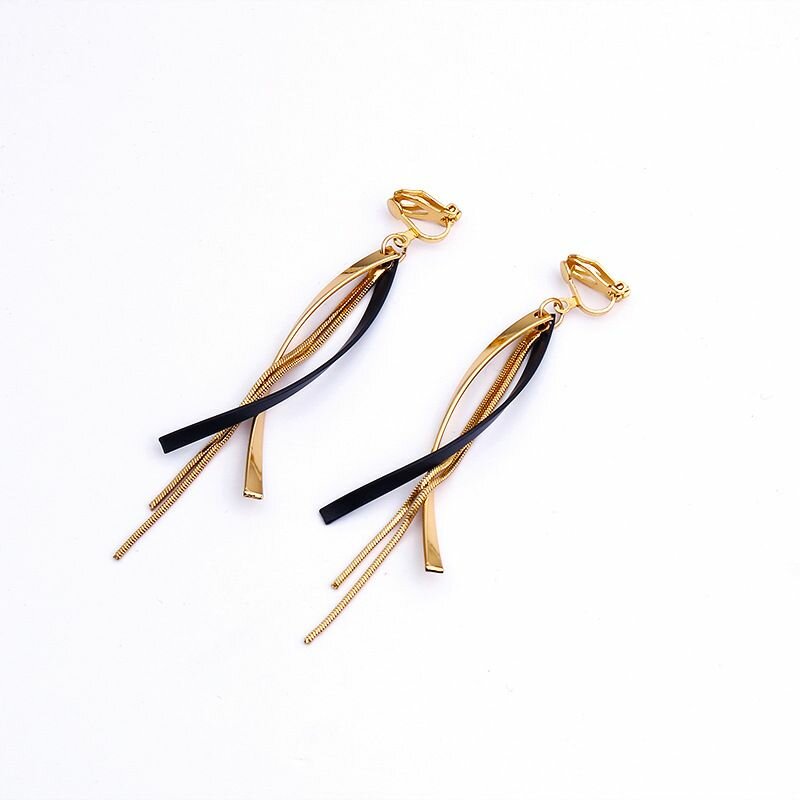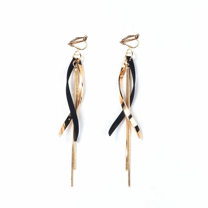 Купить Dolce far niente / Клипсы на уши для женщин Fiesta без прокола мочки подвески / Серьги-клипсы для ушей длинные черно-золотые в подарочной упаковке
