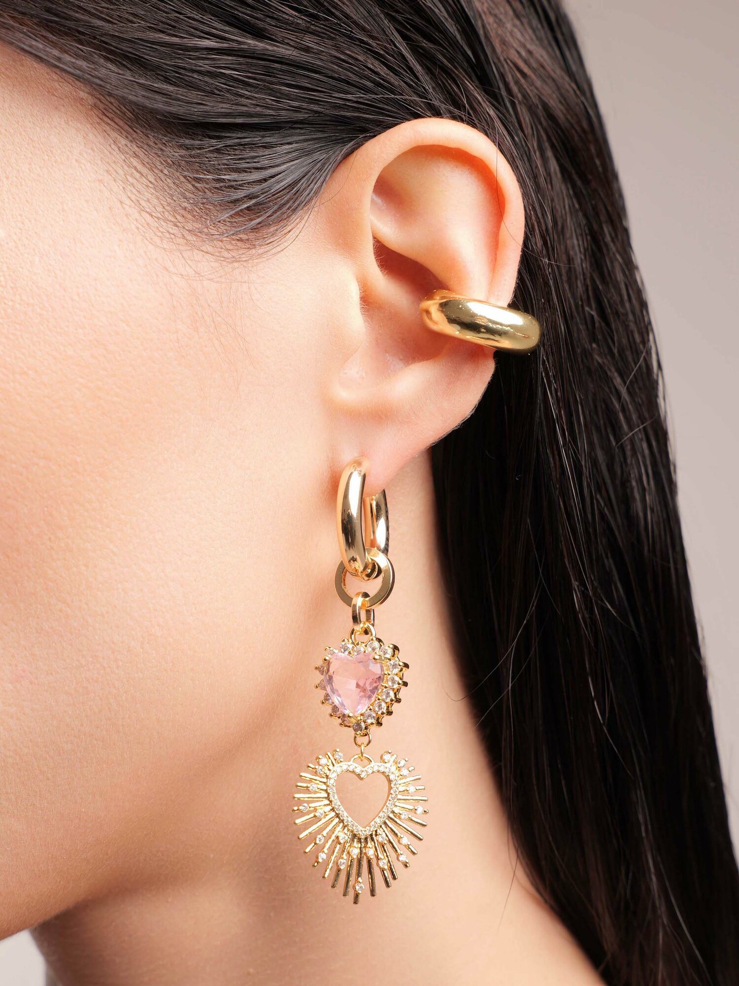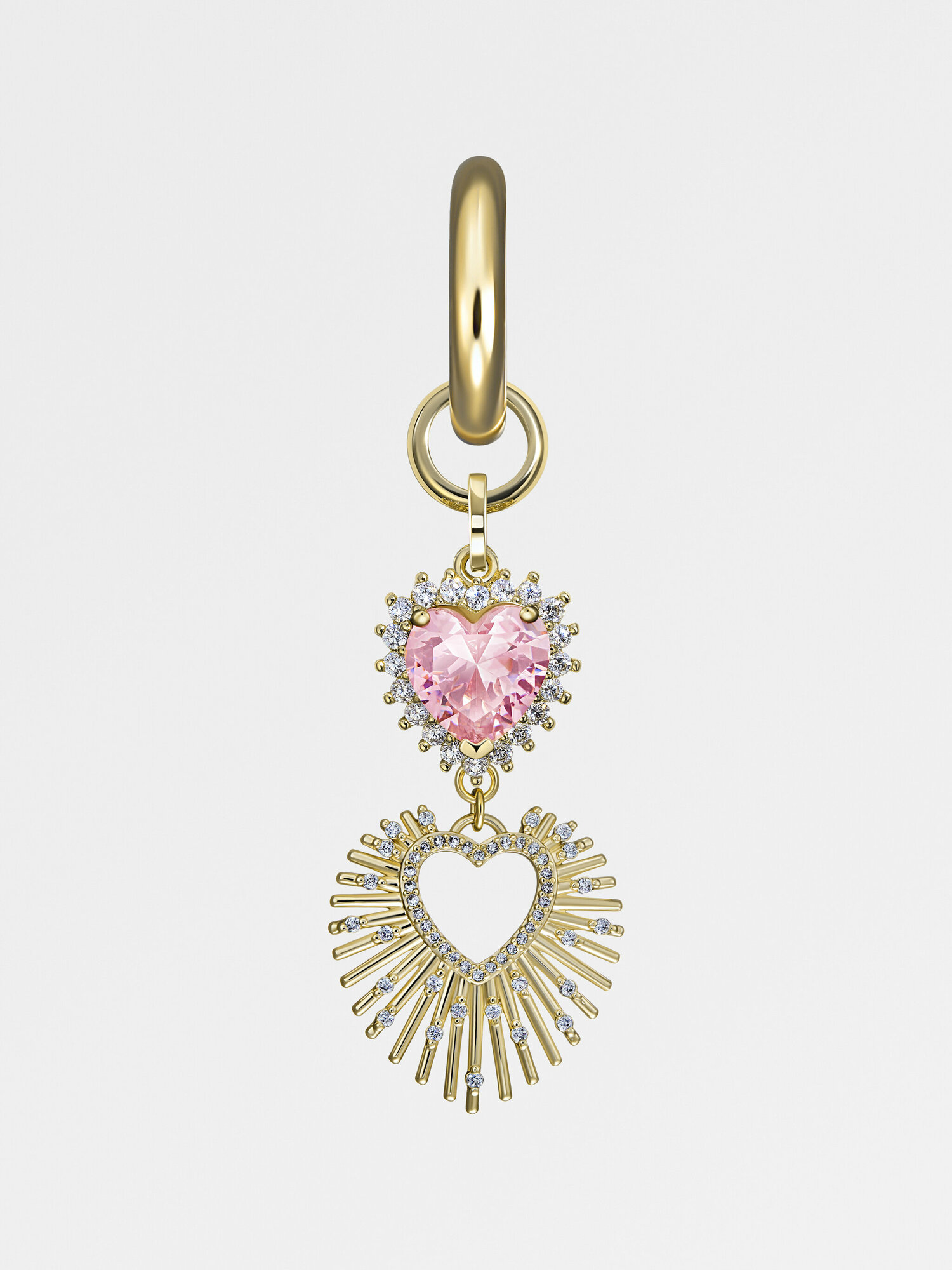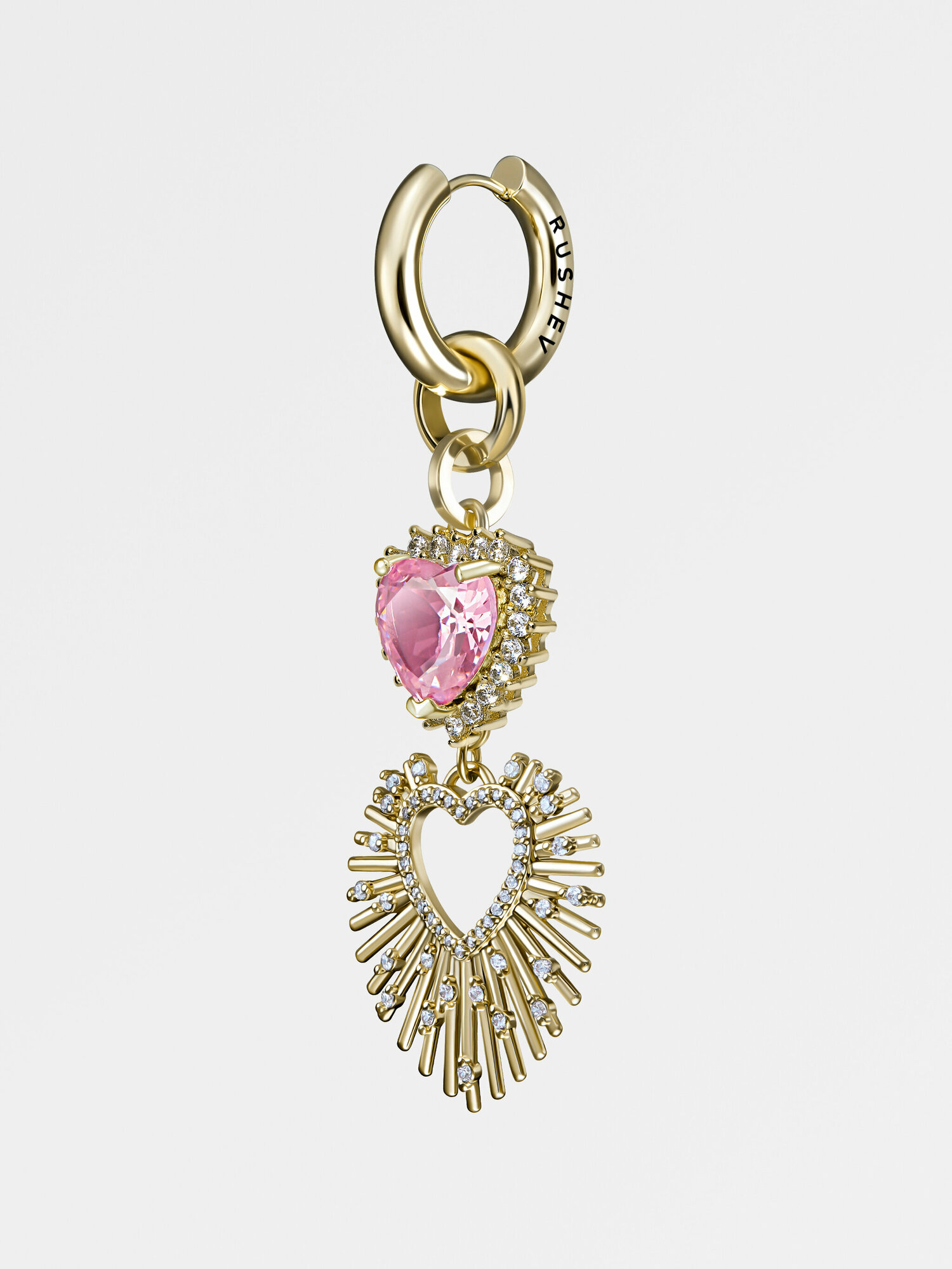 Купить Моносерьга "DOUBLE PINK HEART" Gold