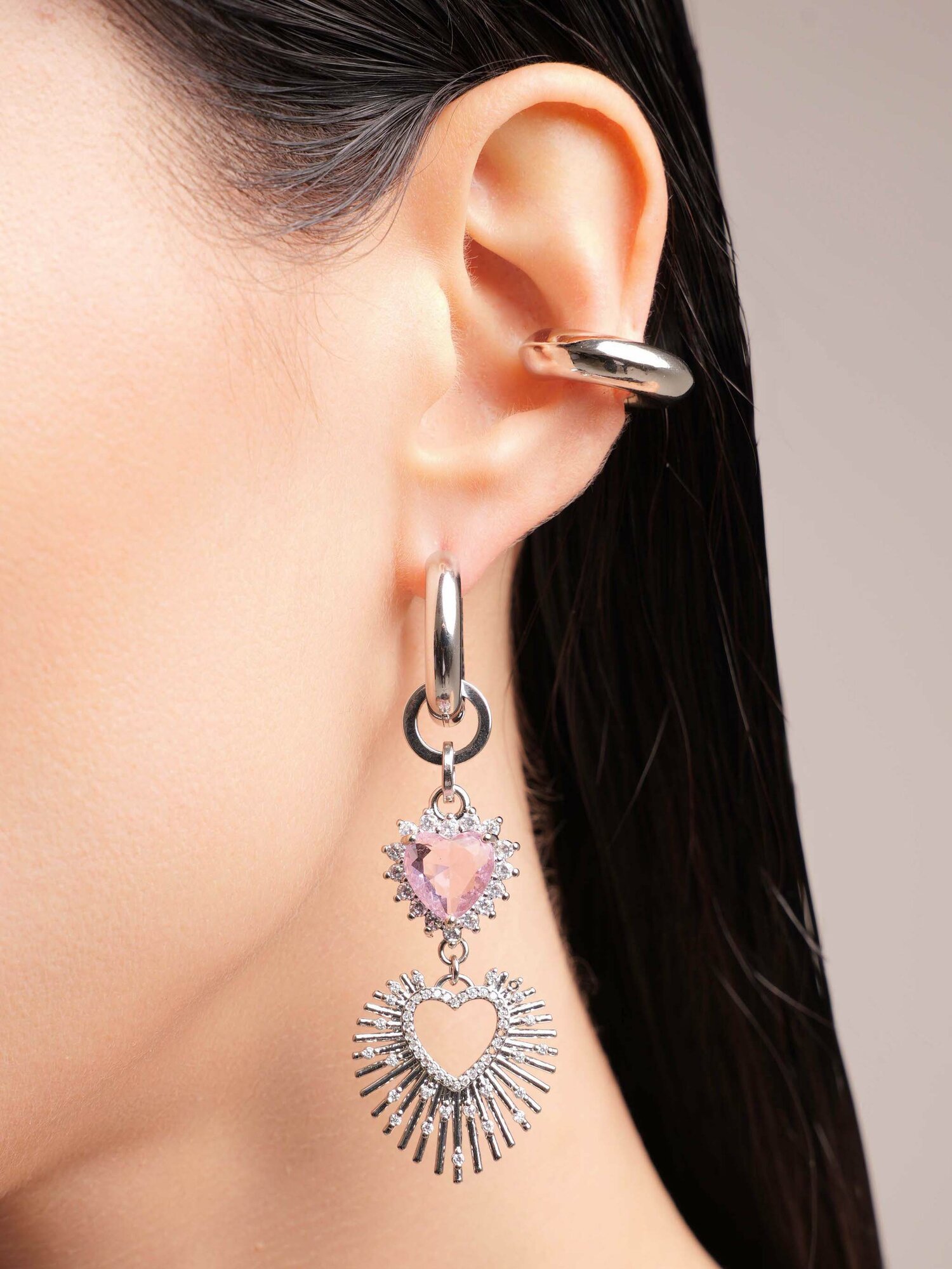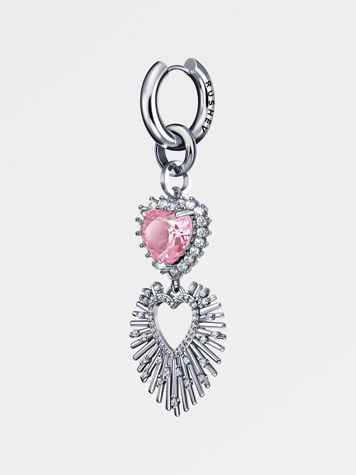 Купить Моносерьга RUSHEV "DOUBLE PINK HEART" Silver
