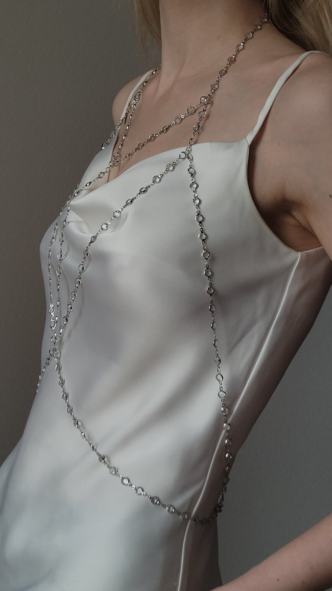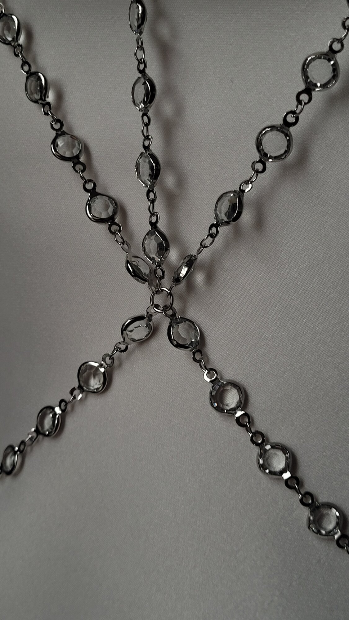 Бодичейн, серебряная цепочка на тело со стразами интересное: