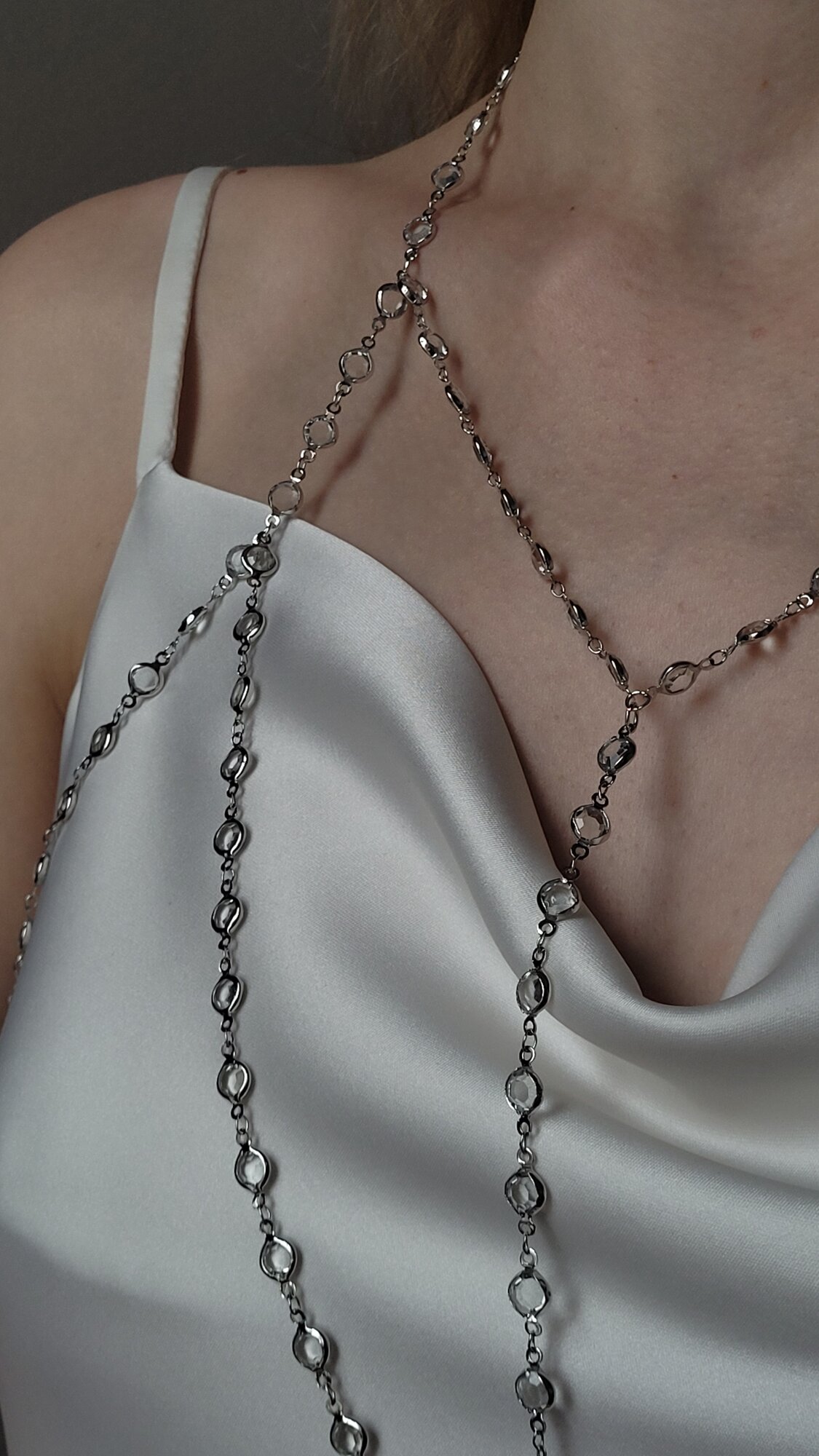 Бодичейн со стразами кристаллами серебристый
