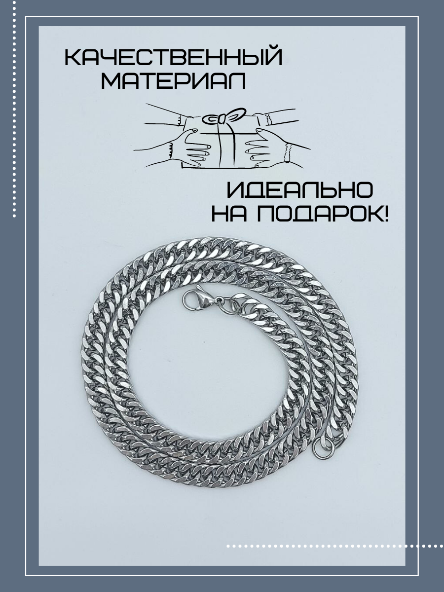 Цепочка на шею мужская женская, цепь из нержавеющей стали 55 см, ширина 8 мм, бижутерия под серебро, подарок мужчине интересное: