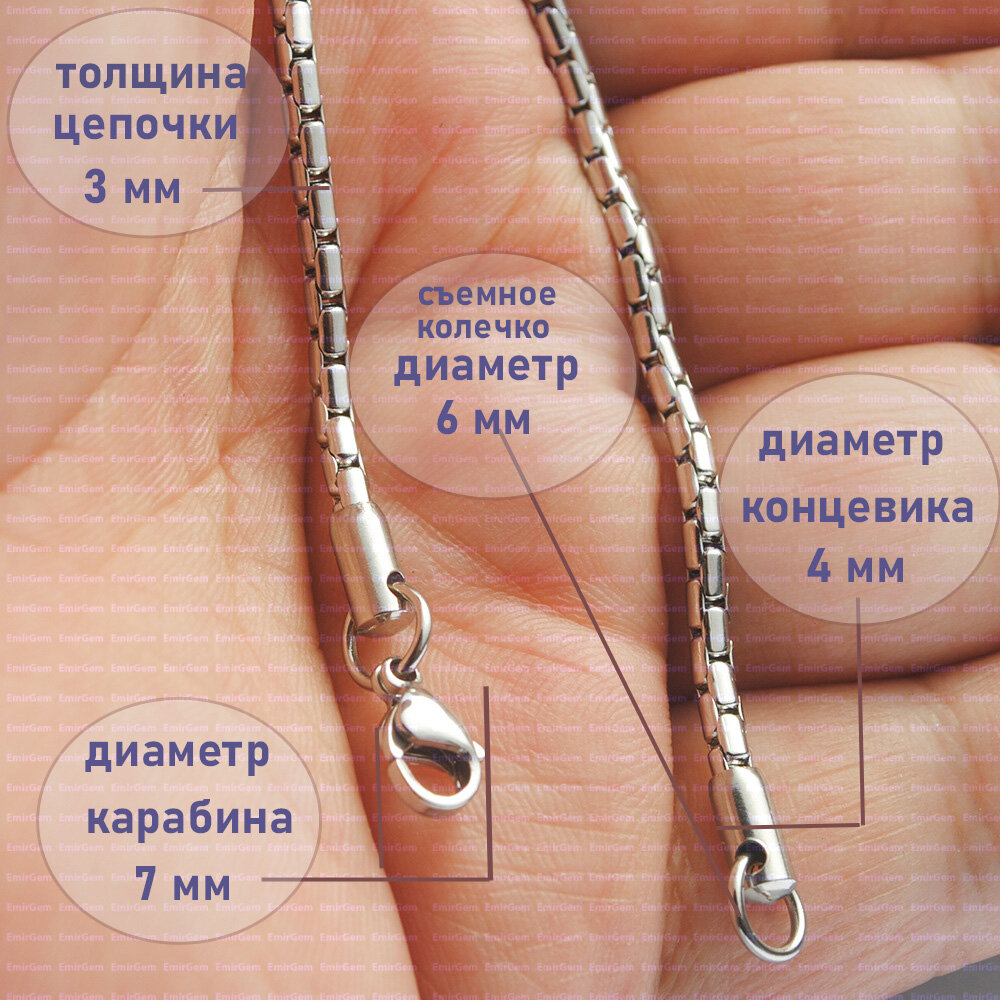 Цепь бижутерия, цепочка на шею мужская EmirGem, нержавеющая сталь, стальная, металлическая, 65 см, толщина 3 мм