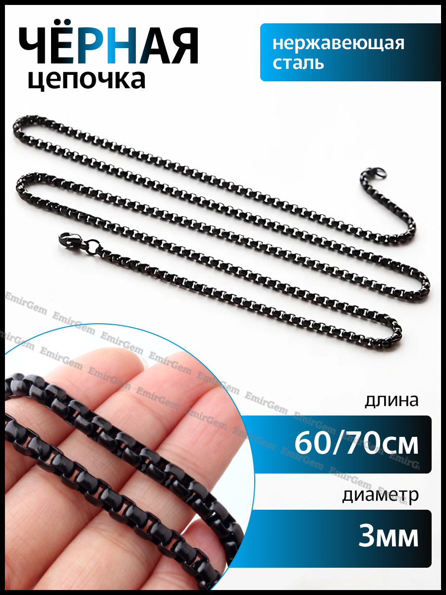 Цепь EmirGem, длина 70 см, черный