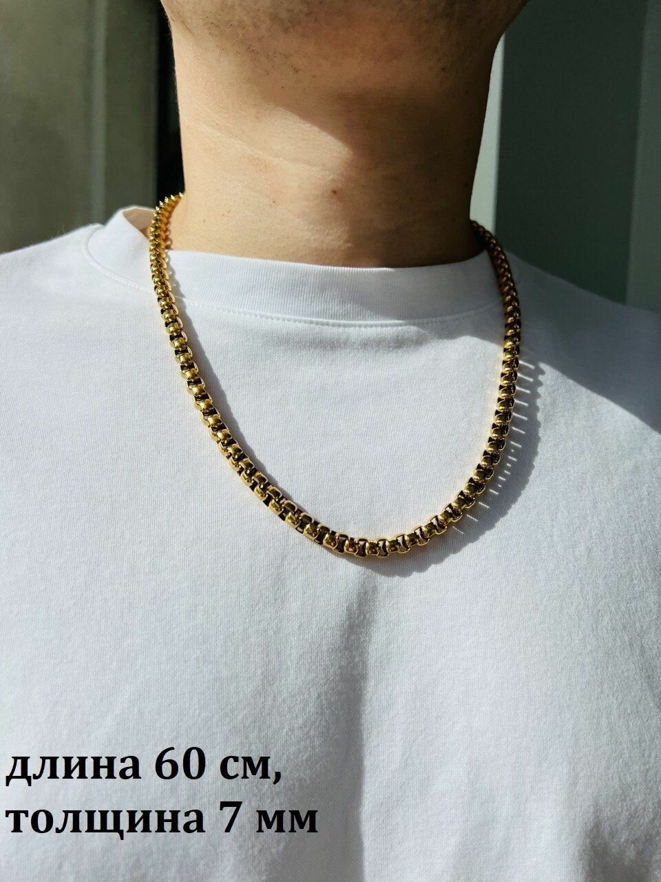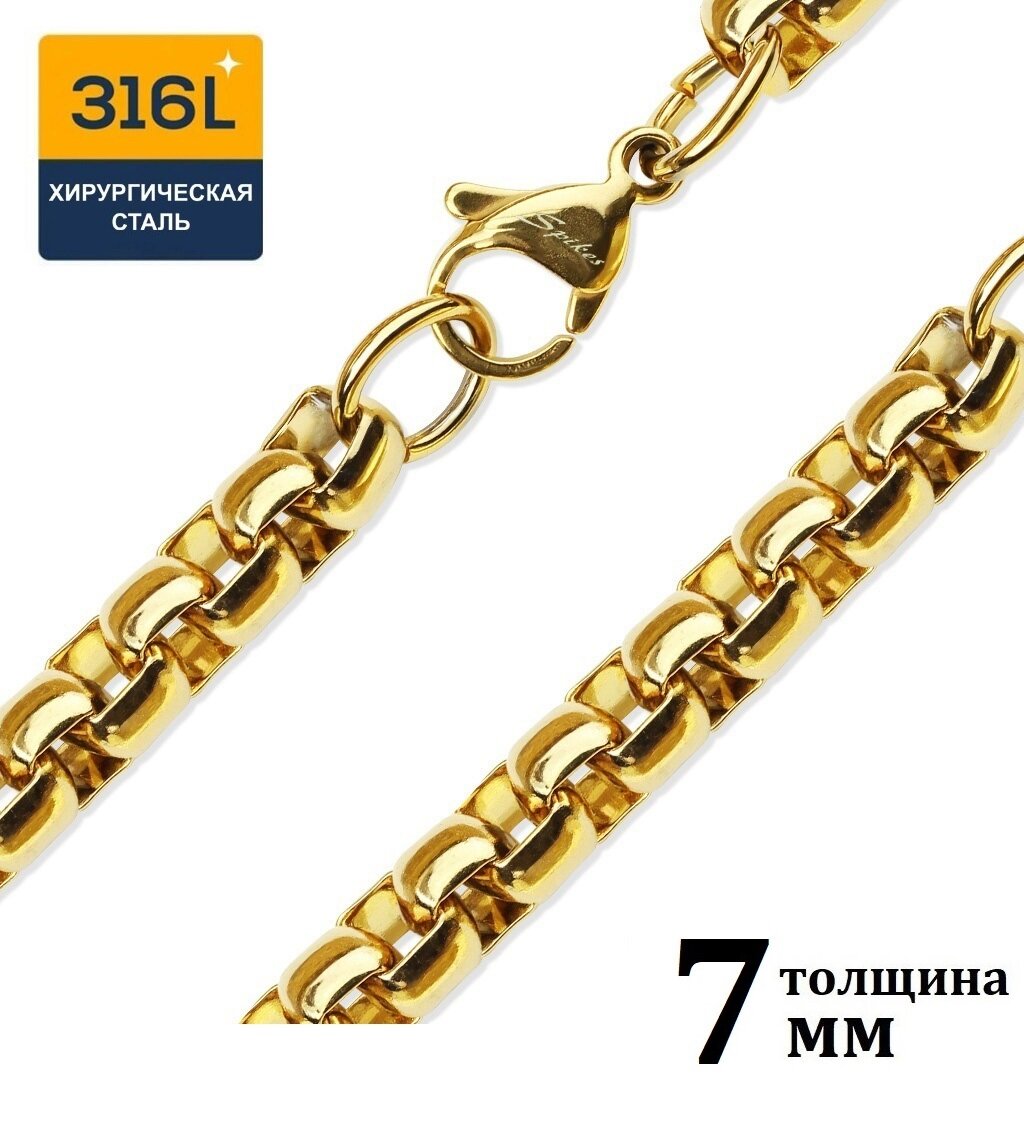 Цепочка на шею из ювелирной стали, плетение лобстер / Толщина 7 мм, длина 60 см